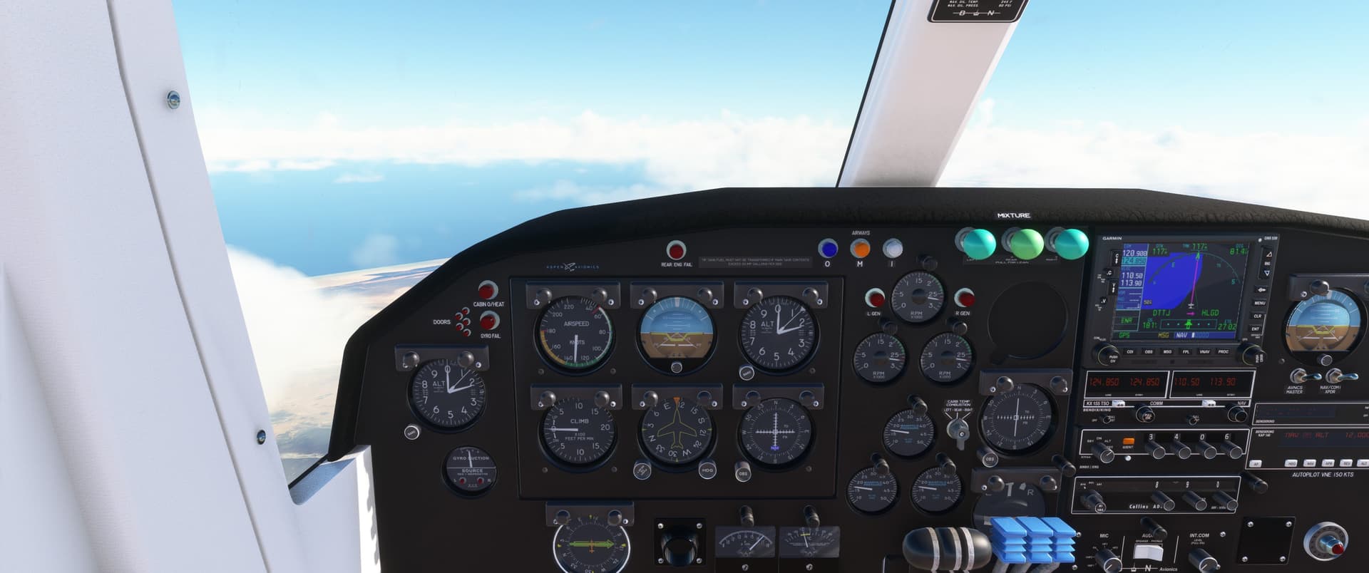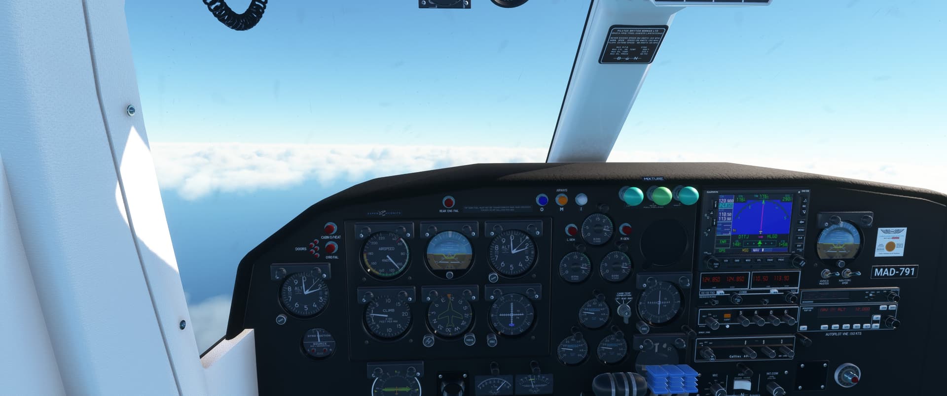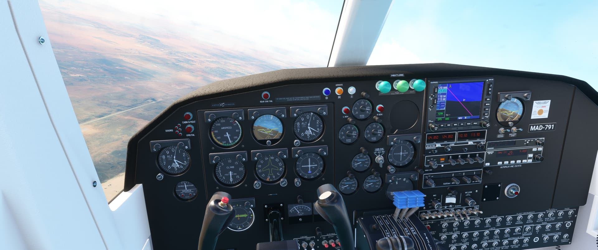 I wasn’t in the clouds 2 minutes and my autopilot kicked off and refused to reengage. I got myself a little more hand flying experience than I thought I would. In fact, I was busy enough that the rest of the screen shots on the way down were flight deck shots.