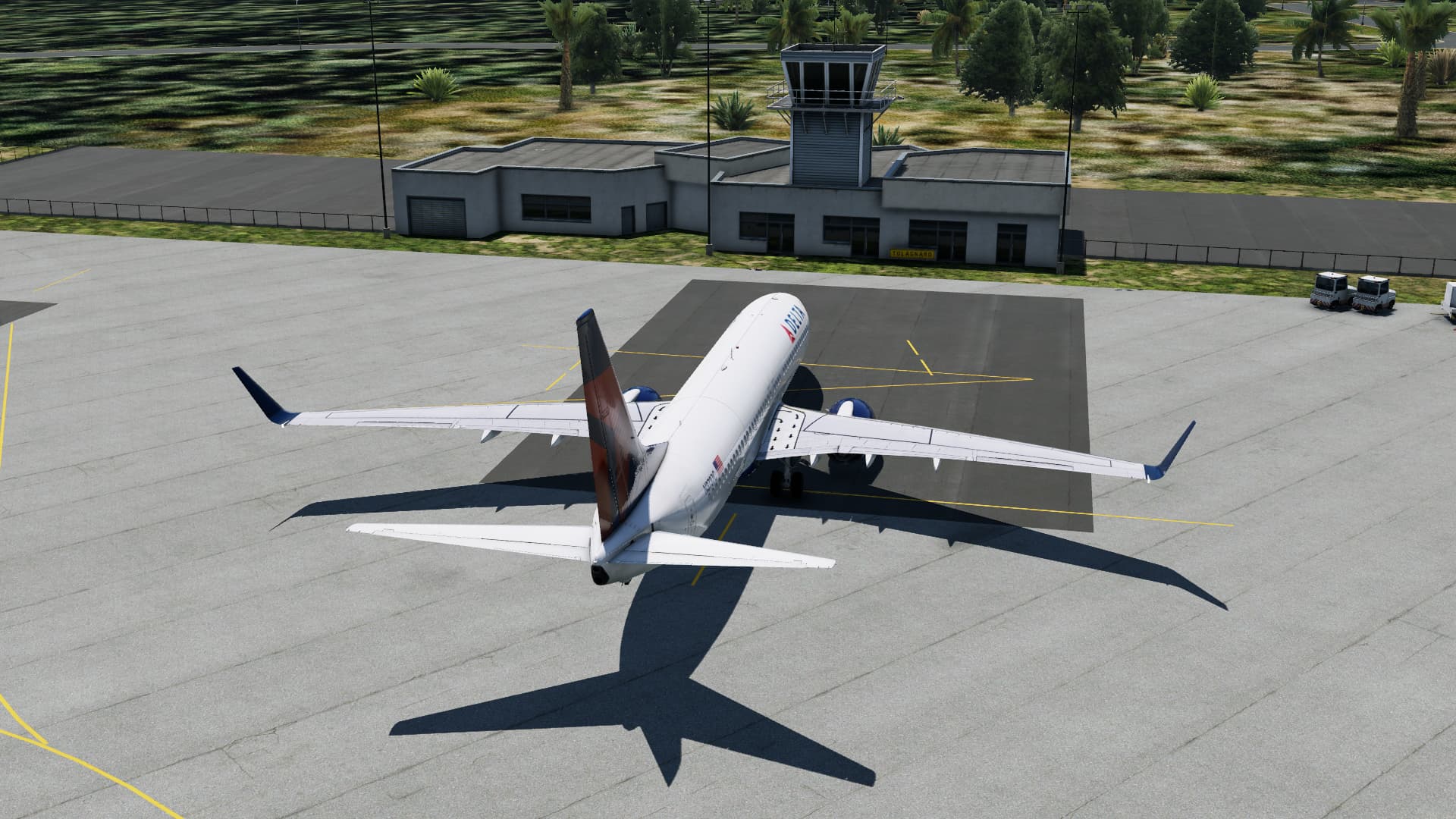 No pushback service available here, but not to worry, I just threw the engines in reverse for a moment and problem solved.