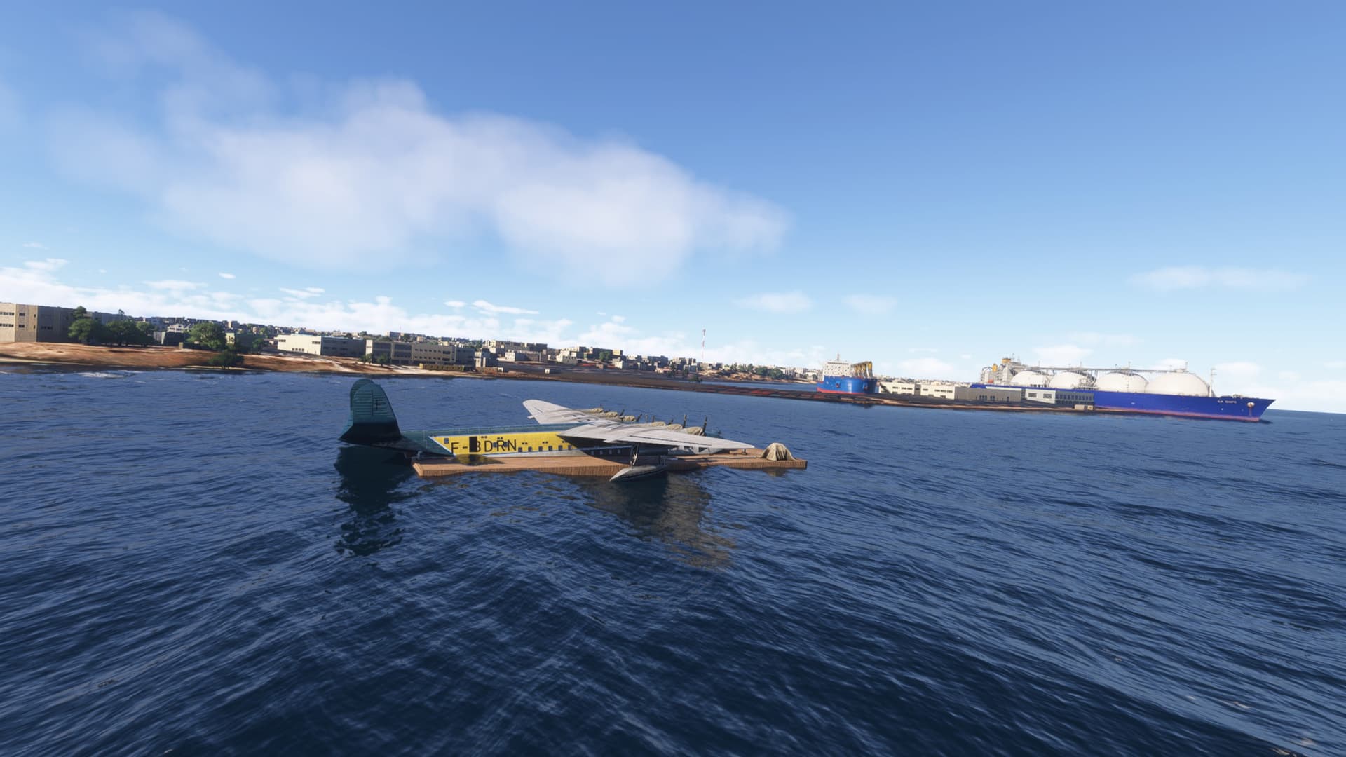 We’re still at the Red Sea, lagging behind considerably, considering the recent progress in the thread. Nevertheless, for a change we’ll do an overland stretch now, Djibouti Mogadishu. We’ll fly over the horn of Africa rather than following the coast line around it. As I might have some extra time to extend the leg further south, I take on a massive amount of fuel:
