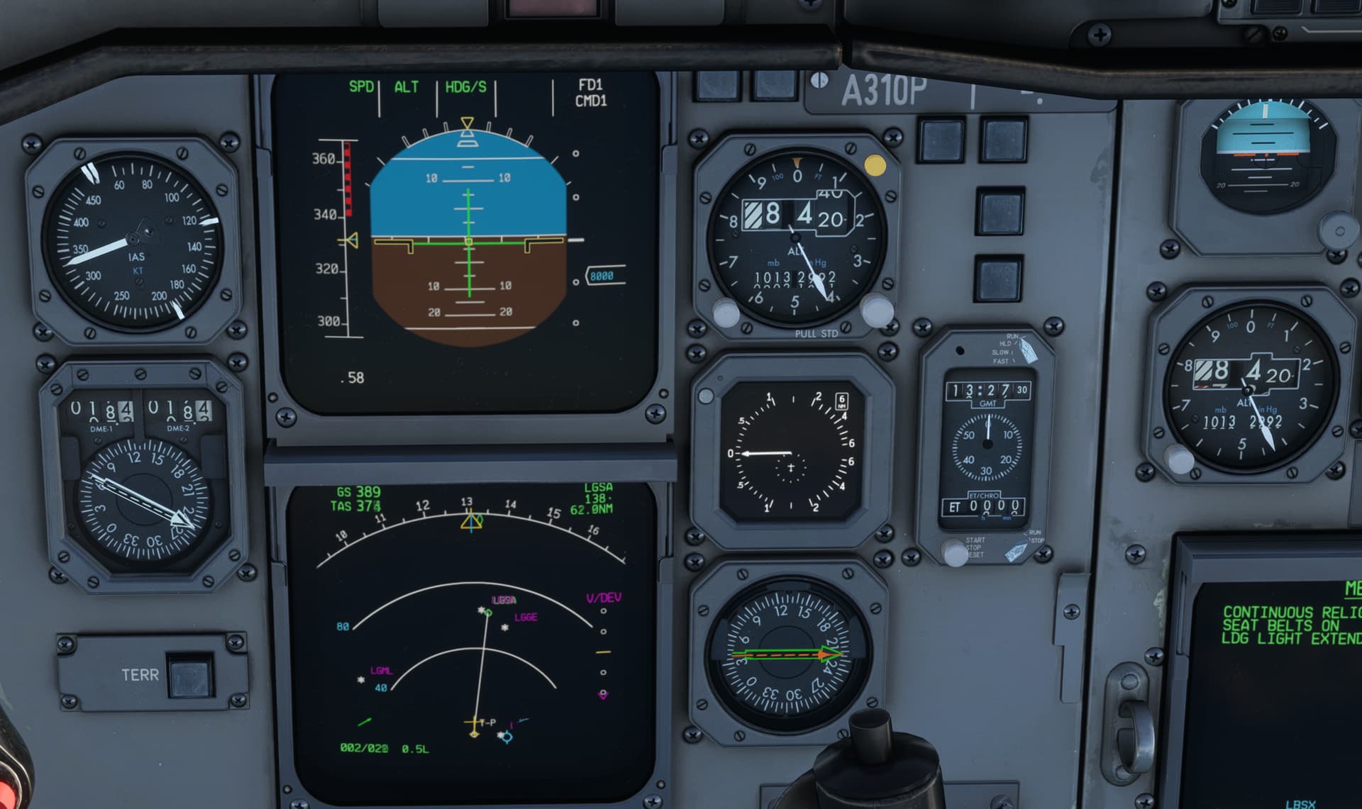 Auto Pilot set to LGSA, it was time to have a (short?) walk around the cabin. Took same more time than anticipated … So the Auto Pilot figured that after overflying LSGA, we should apparently proceed to the Greek mainland: