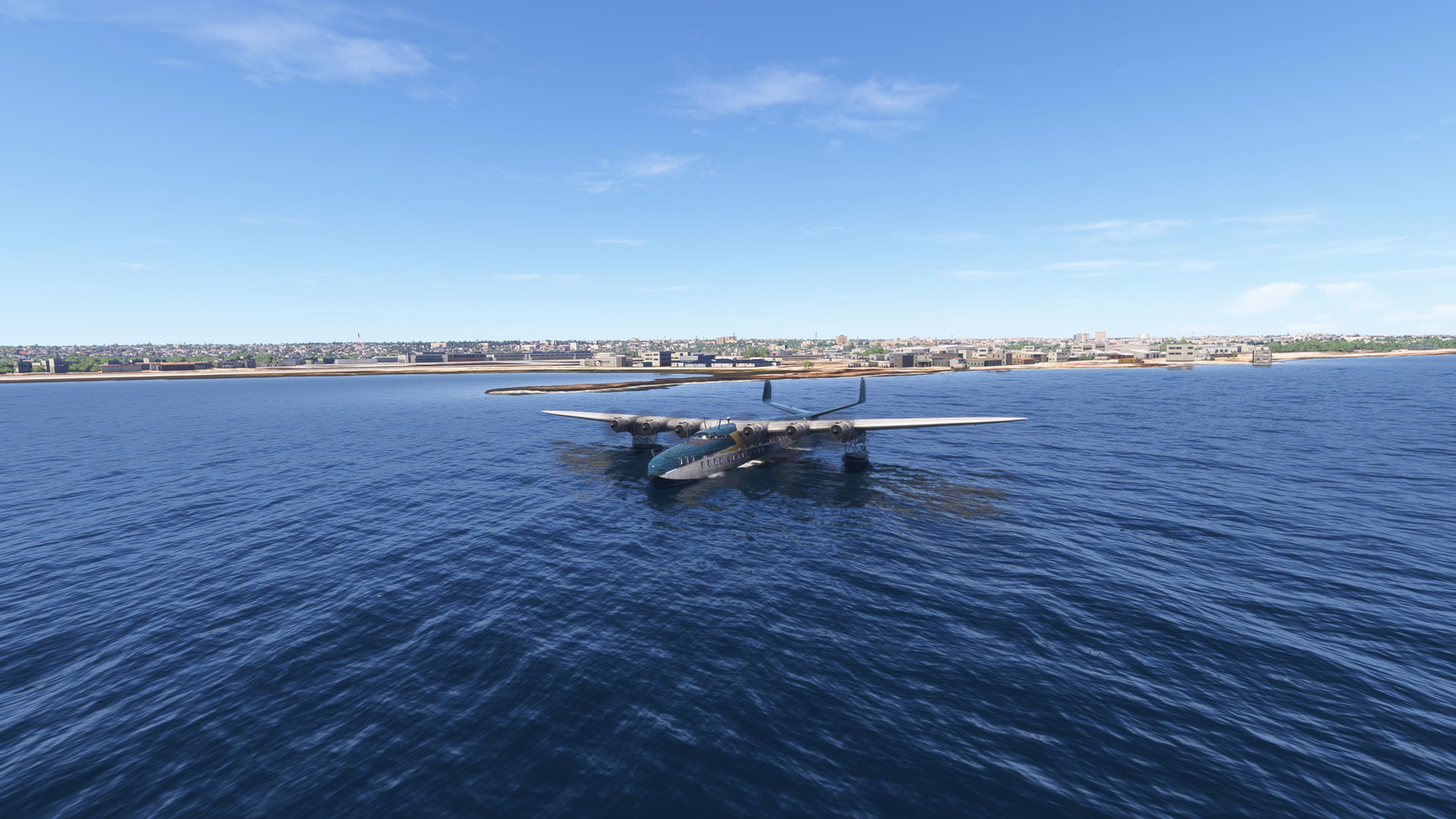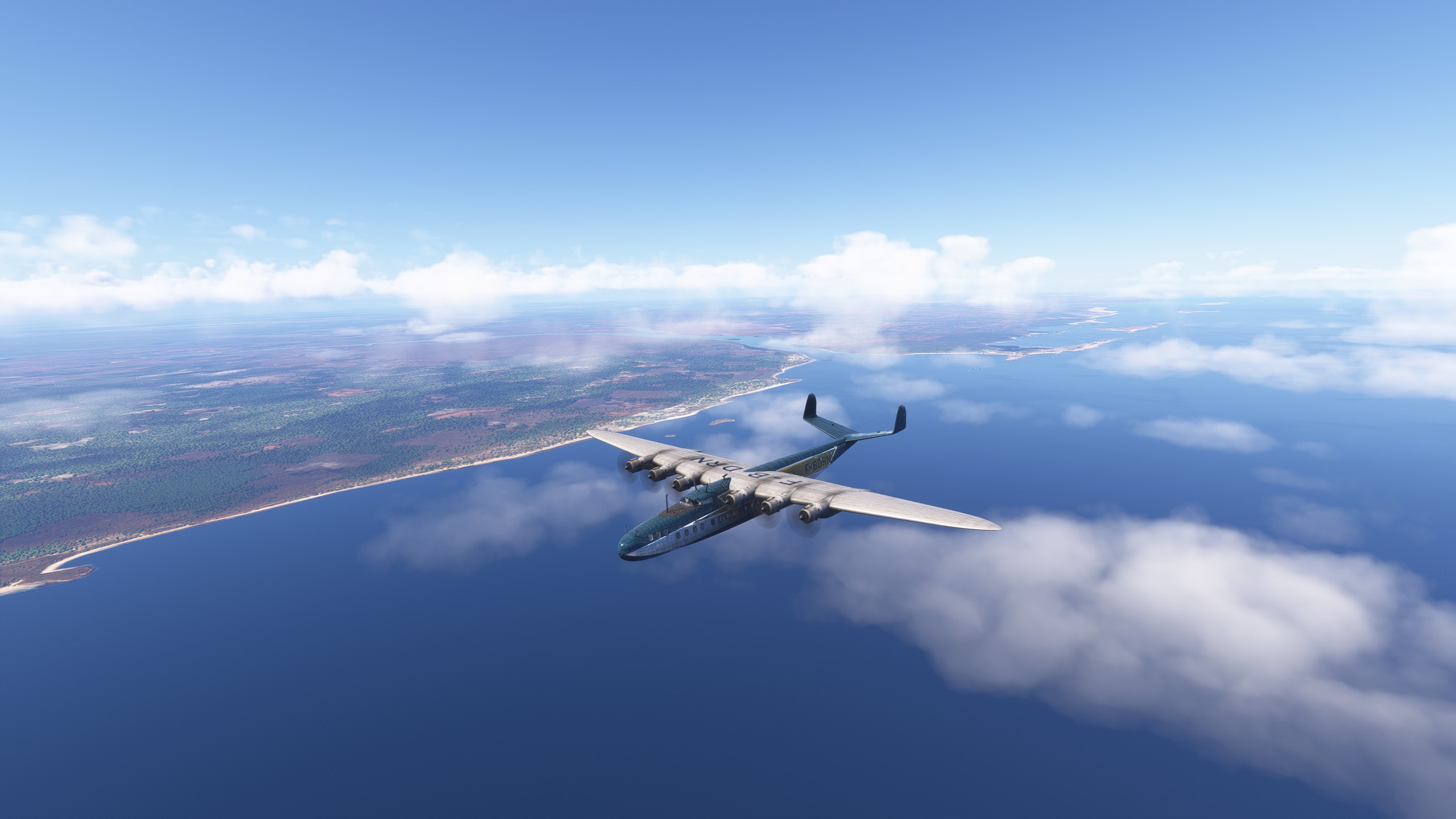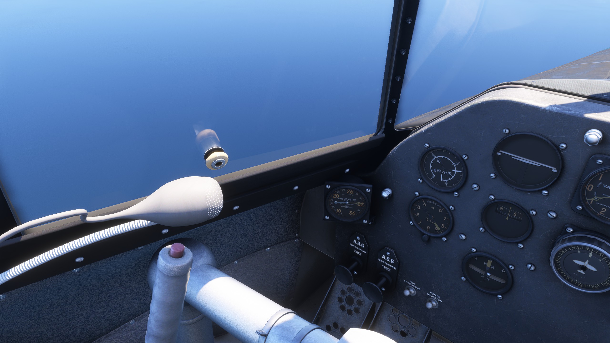 But there’s a problem. The autopilot altitude hold doesn’t work properly. After a quick bar run I come back to my seat to find us skipping over the water. Luckily no land anywhere in sight and the autopilot also didn’t turn us into a divebomber!