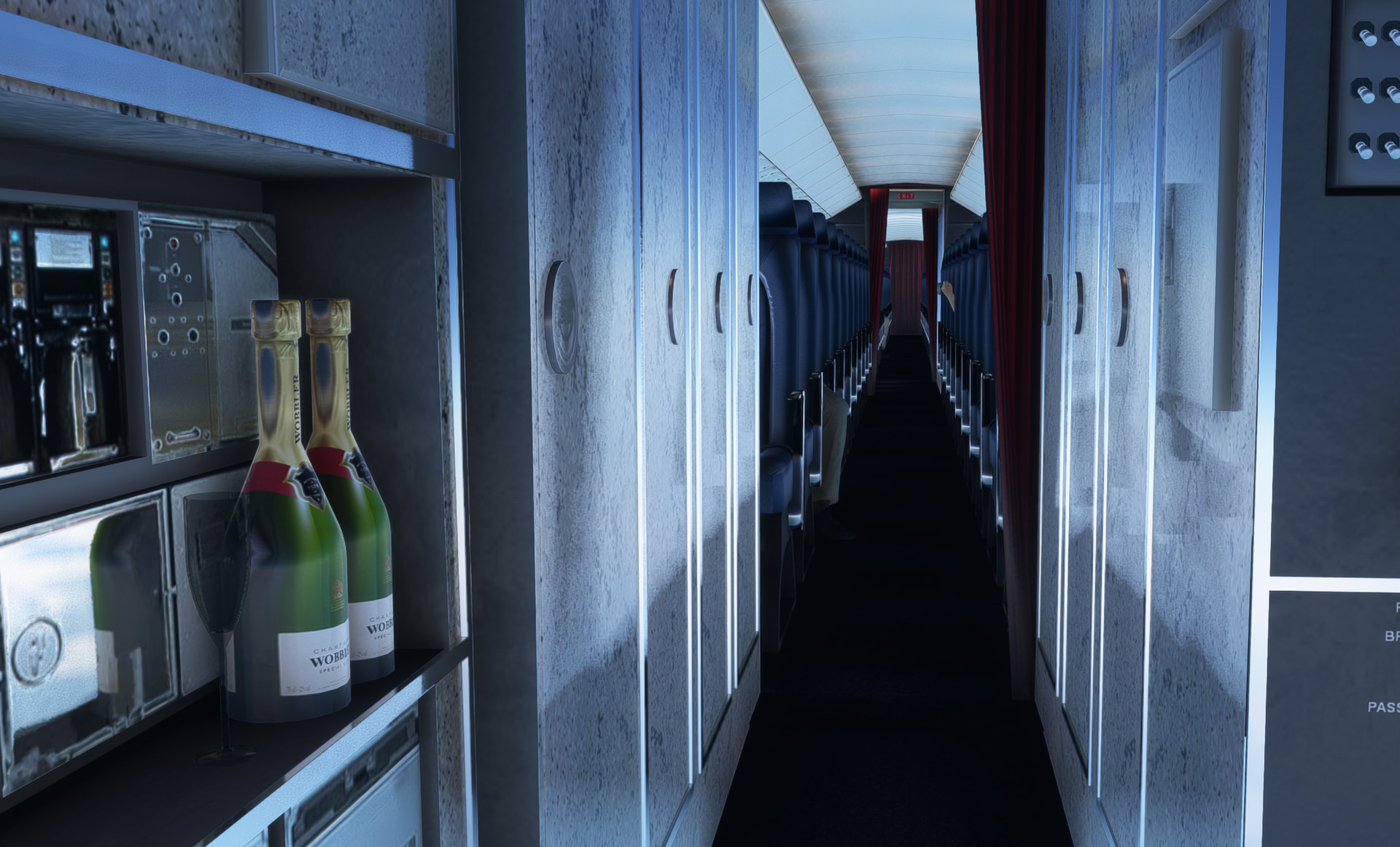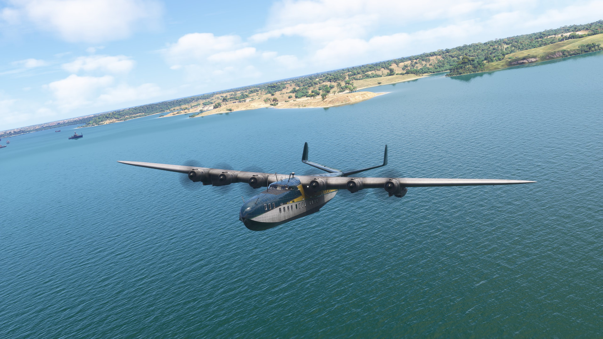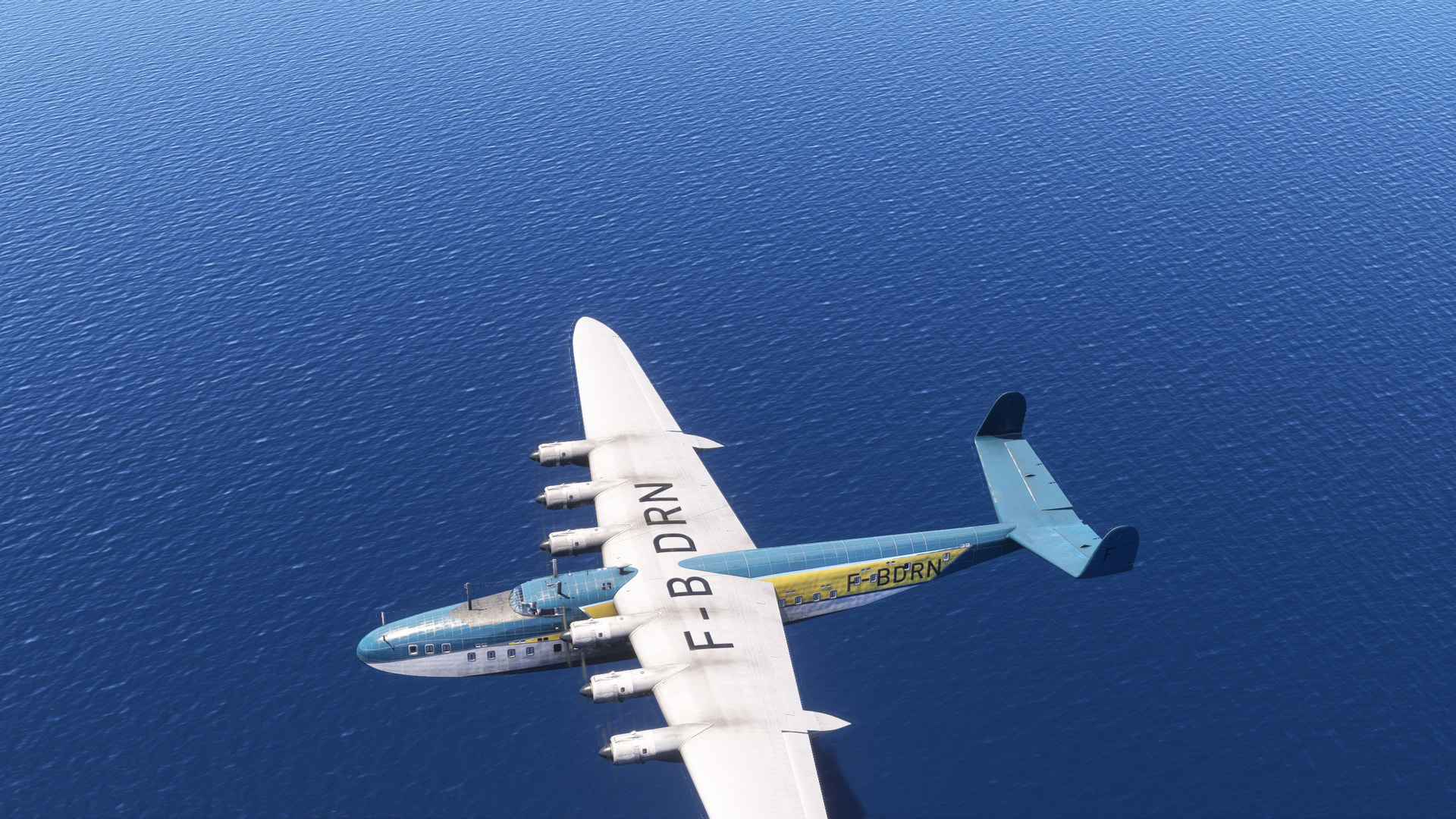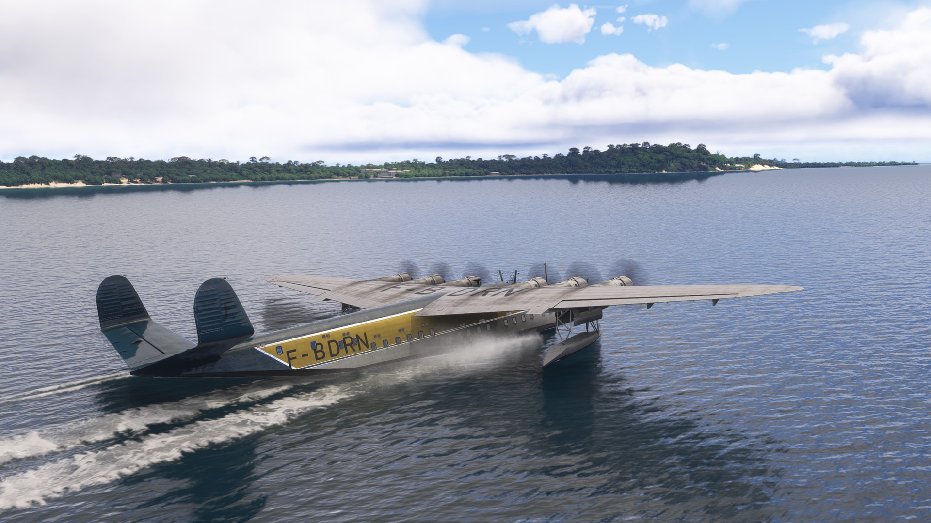 But there’s a problem. The autopilot altitude hold doesn’t work properly. After a quick bar run I come back to my seat to find us skipping over the water. Luckily no land anywhere in sight and the autopilot also didn’t turn us into a divebomber!