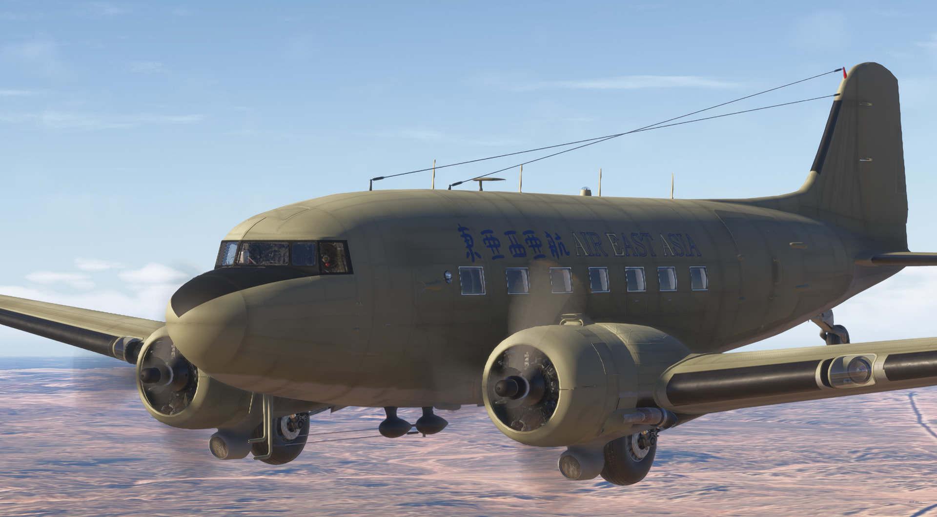 Credits for Indiana Jones DC-3 livery: https://flightsim.to/file/61108/indiana-jones-series-douglas-dc-3-air-east-asia-from-raiders-of-the-lost-ark