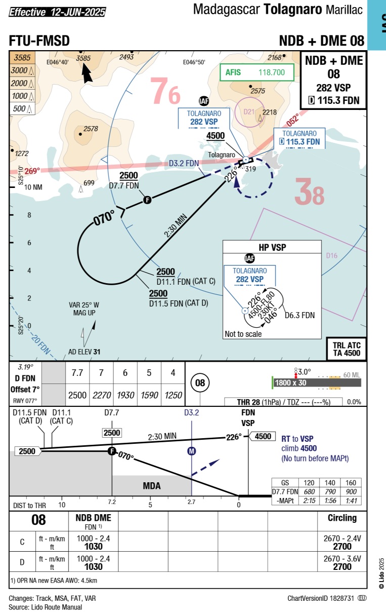 Anyway, the plan was to fly Saint Pierre VOR outbound radial 270 from La Reunion towards Madagascar. As that VOR would cover only 60 nm, I would then keep the heading, follow the coast south once over Madagascar, pick the Tolagnaro NDB and fly NDB-DME approach to rwy 08.