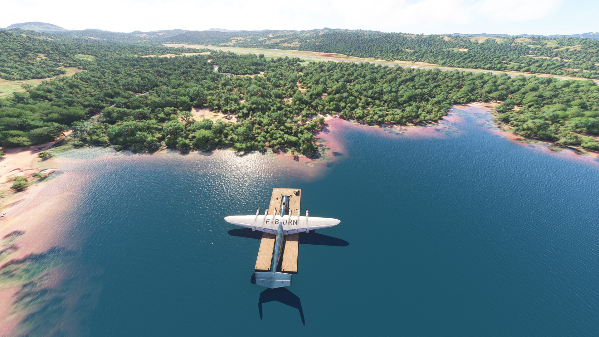 Just the occasional glimpse of a landmark (here, Lake Muzhwi, Zimbabwe) below.