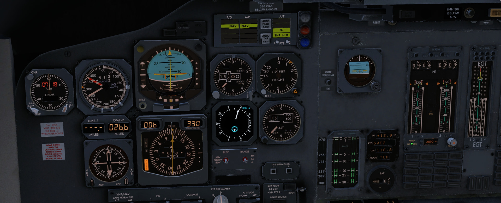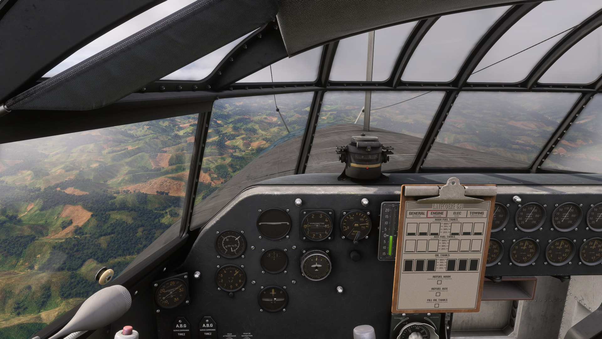 Trying to stay below the low cloud cover so our visual navigation has a chance. Also note the fuel transfer from Aux to Main tanks has already happened.