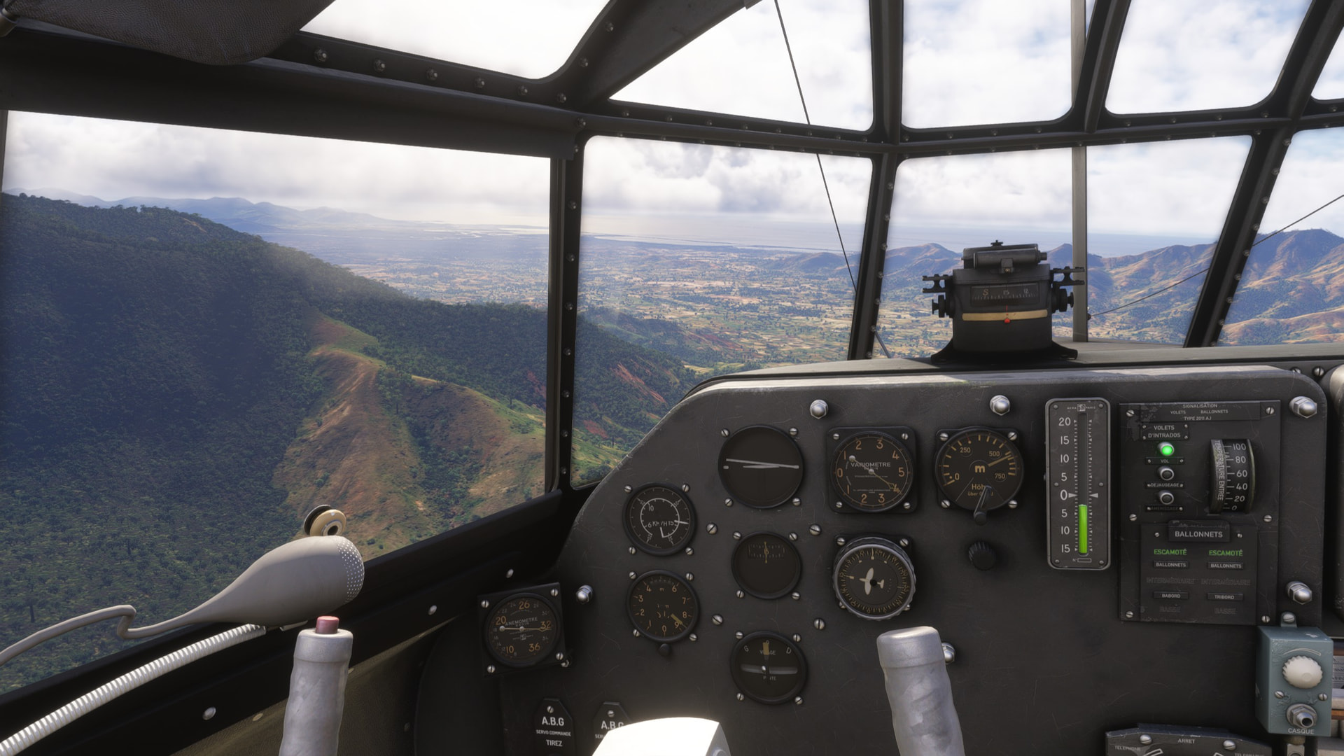 But these were the last hills before the coast. Soon we see the lakes/lagoons before the airfield. We announce our fake stop/go over the radio.