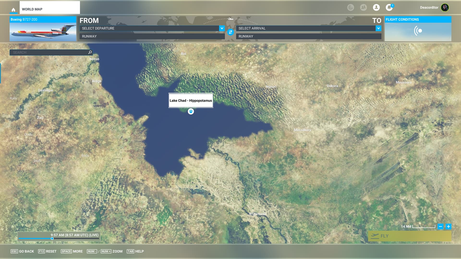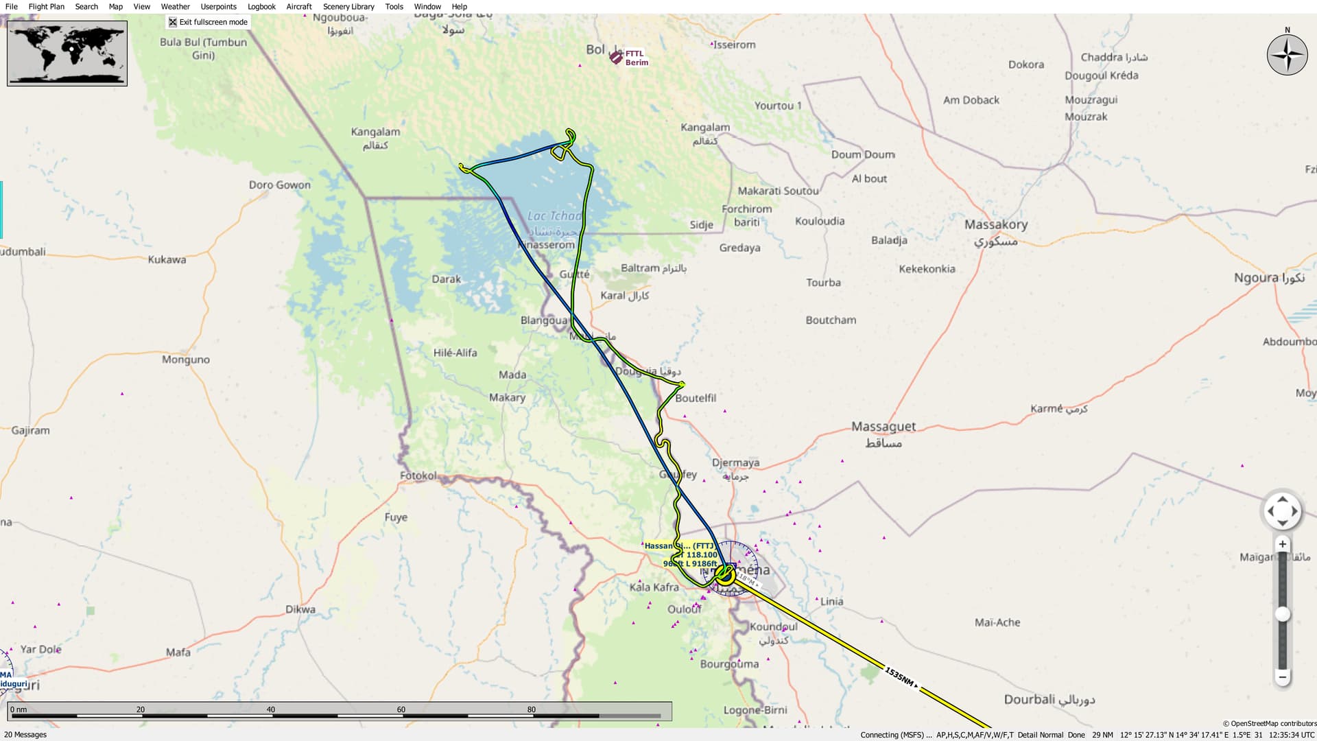 Thus armed with plan and purpose, I found a good livery for my hard working 72 and began trying to find N’Djaména on the Flight Sim map.