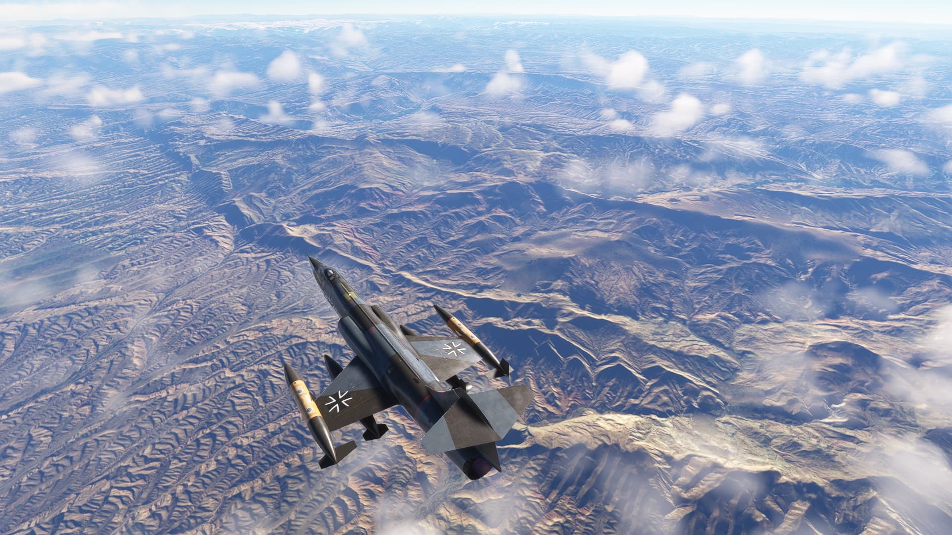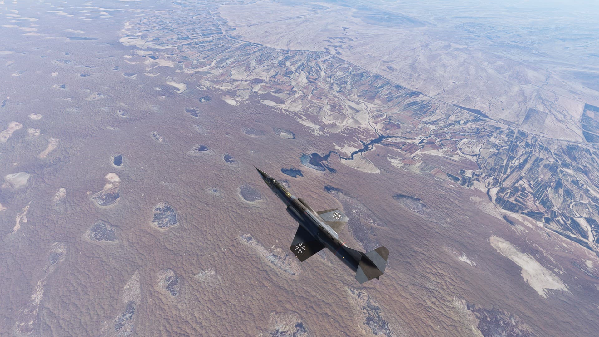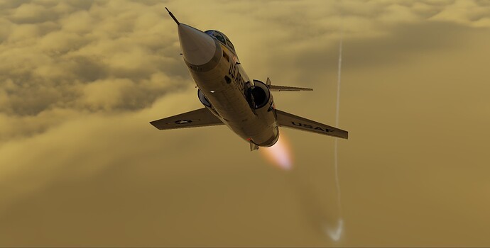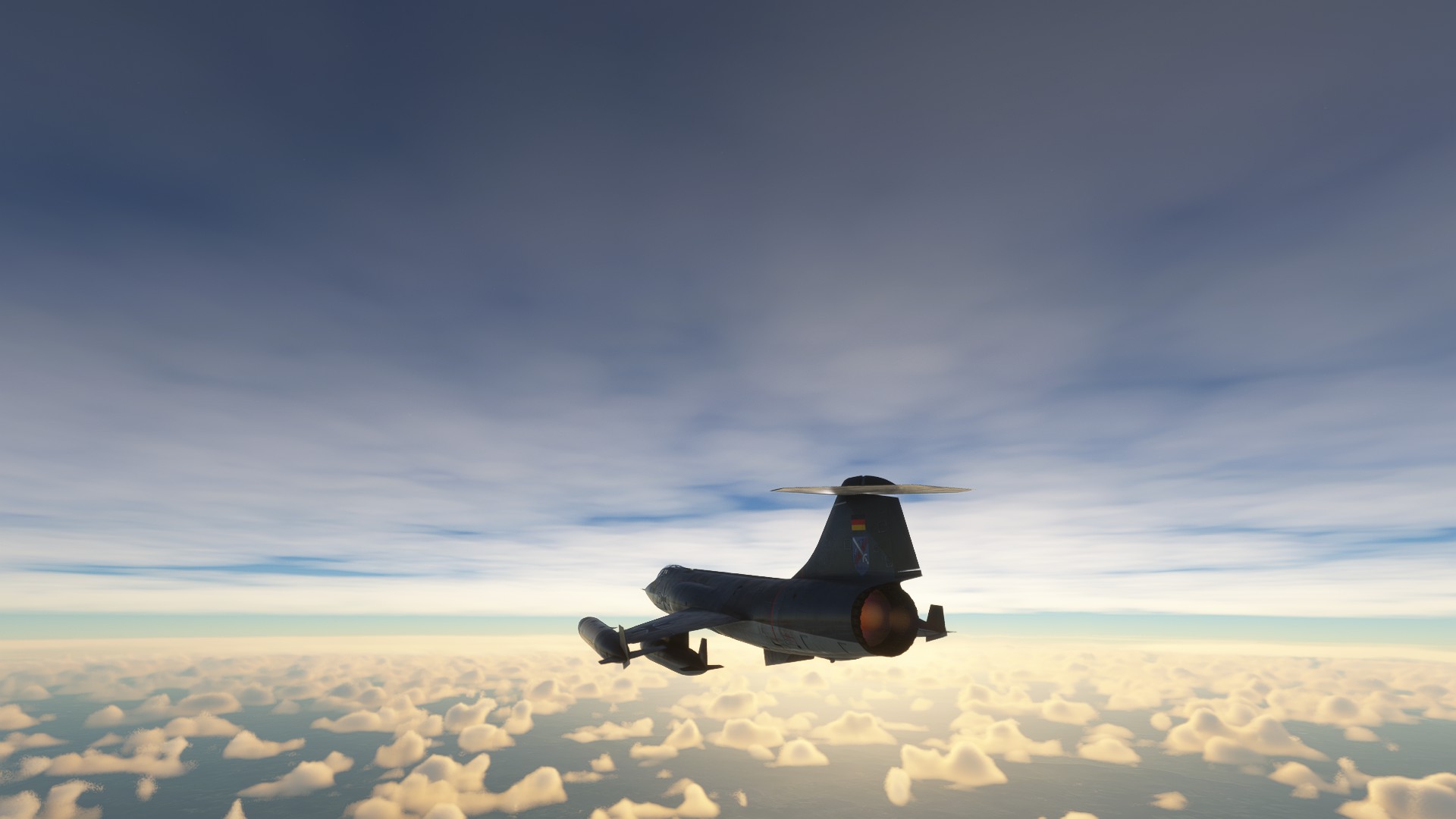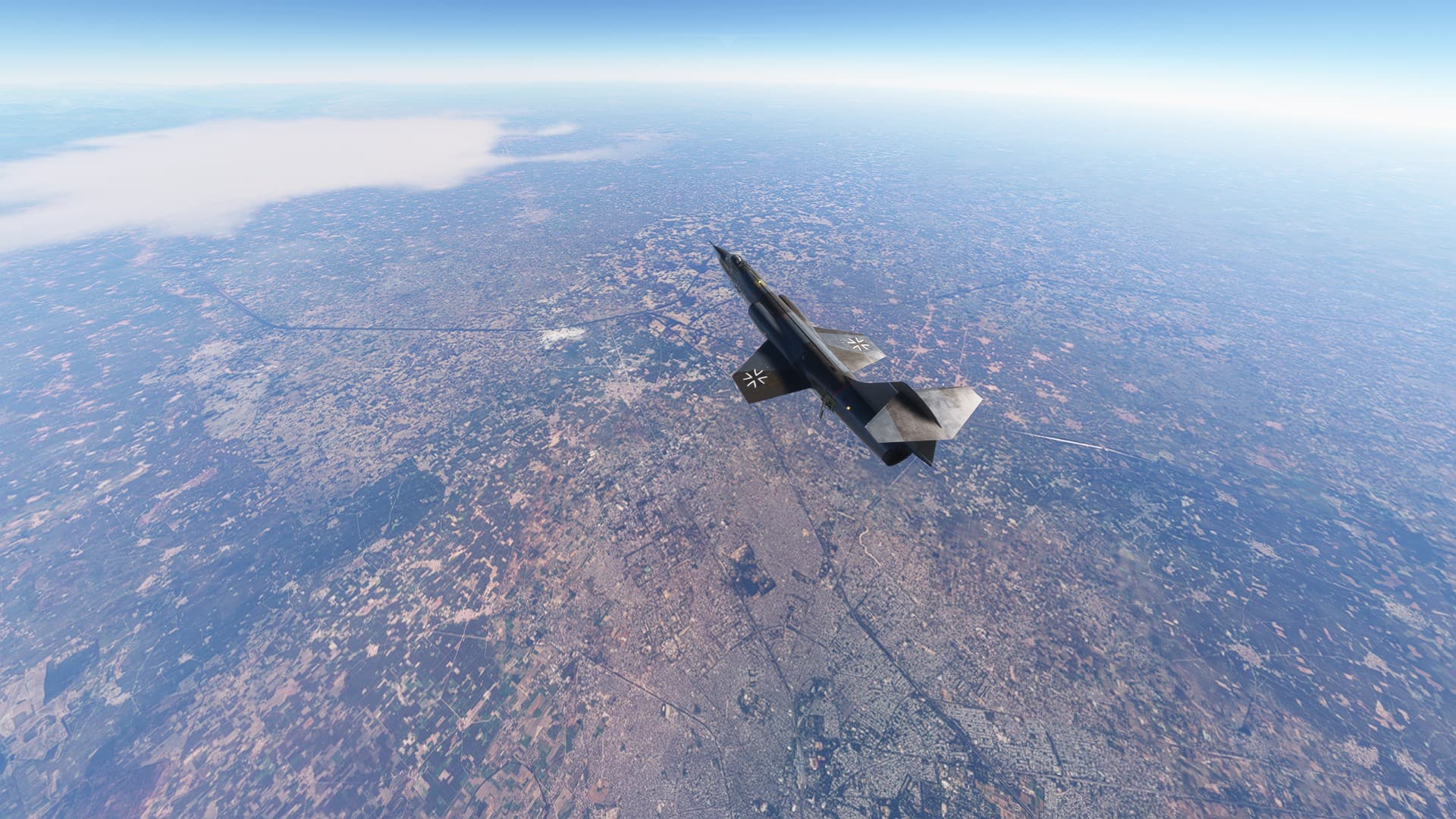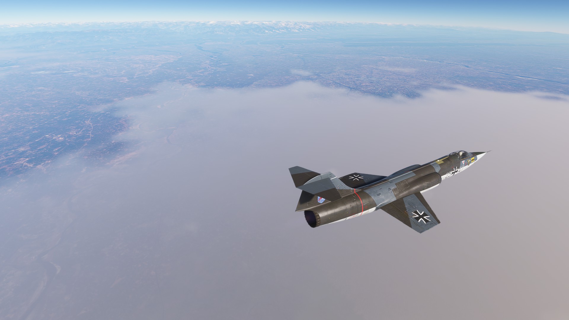 I couldn’t break the sound barrier that way (which I am not sure is realistic, I thought the F-104G was able to break the sound barrier while climbing with a full fuel load) but I knew what to do. I climbed to FL360, then gently pushed the nose down. By the time I reached FL250 I was already supersonic, and accelerating quickly. That pushed my over Mach 1.4 which gives the Starfighter another kick, and let me easily reach my cruise altitude of 45,000 feet.