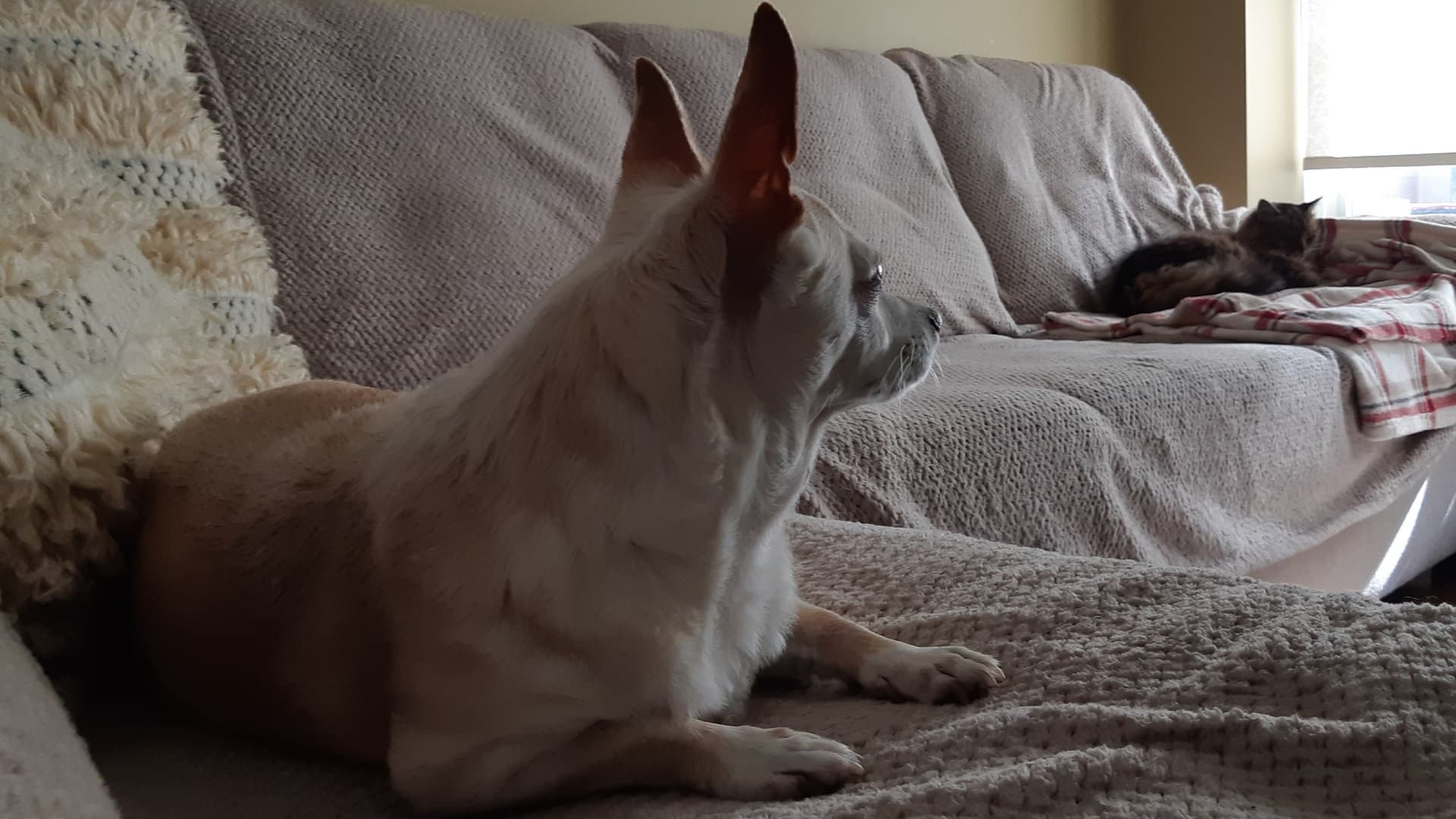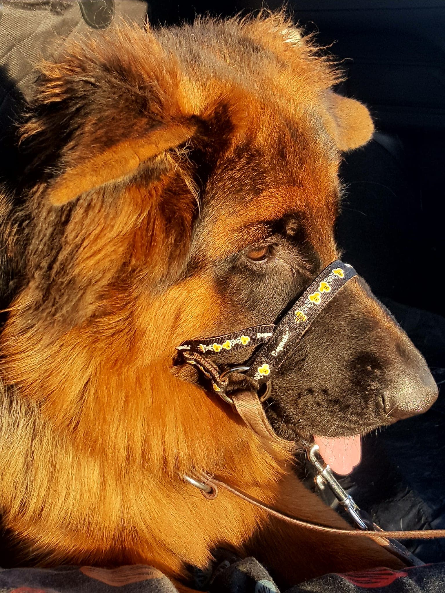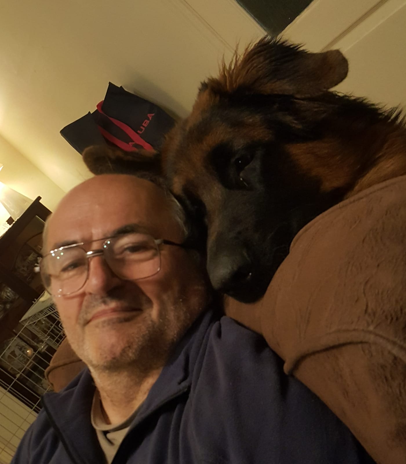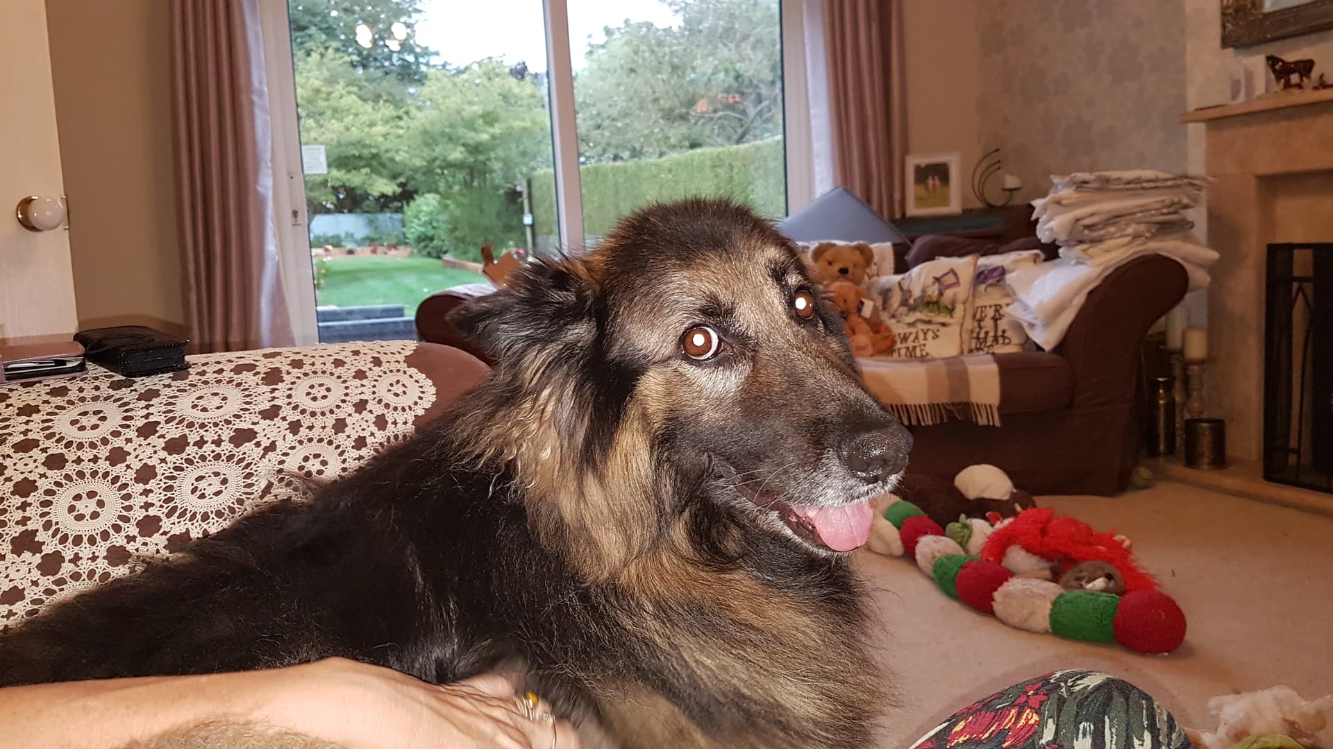 This morning he is teaching me semaphore. One ear horizontal the other down. If you are ever near RAF Cranwell or Conningsby I am near there. My older GSD would have woofs to say to a dog napper even though she is a softy.