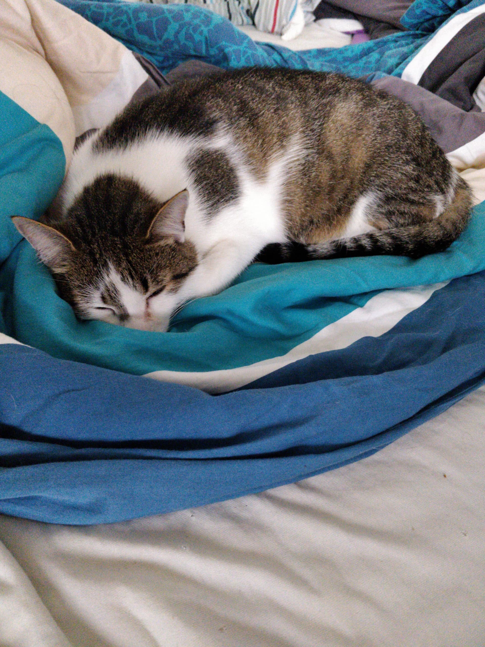 As soon as the temperatures start dropping below 20°C the cat will take every opportunity to get onto a human’s lap and/or sleep in a bed.