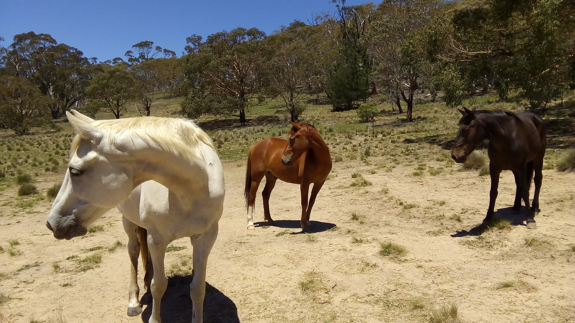 The Bay and Chestnut are Brumby (Australian wild horse) geldings, about the size of a large pony but have the stamina of a thoroughbred and more than stout enough to carry my chunky body ![]()