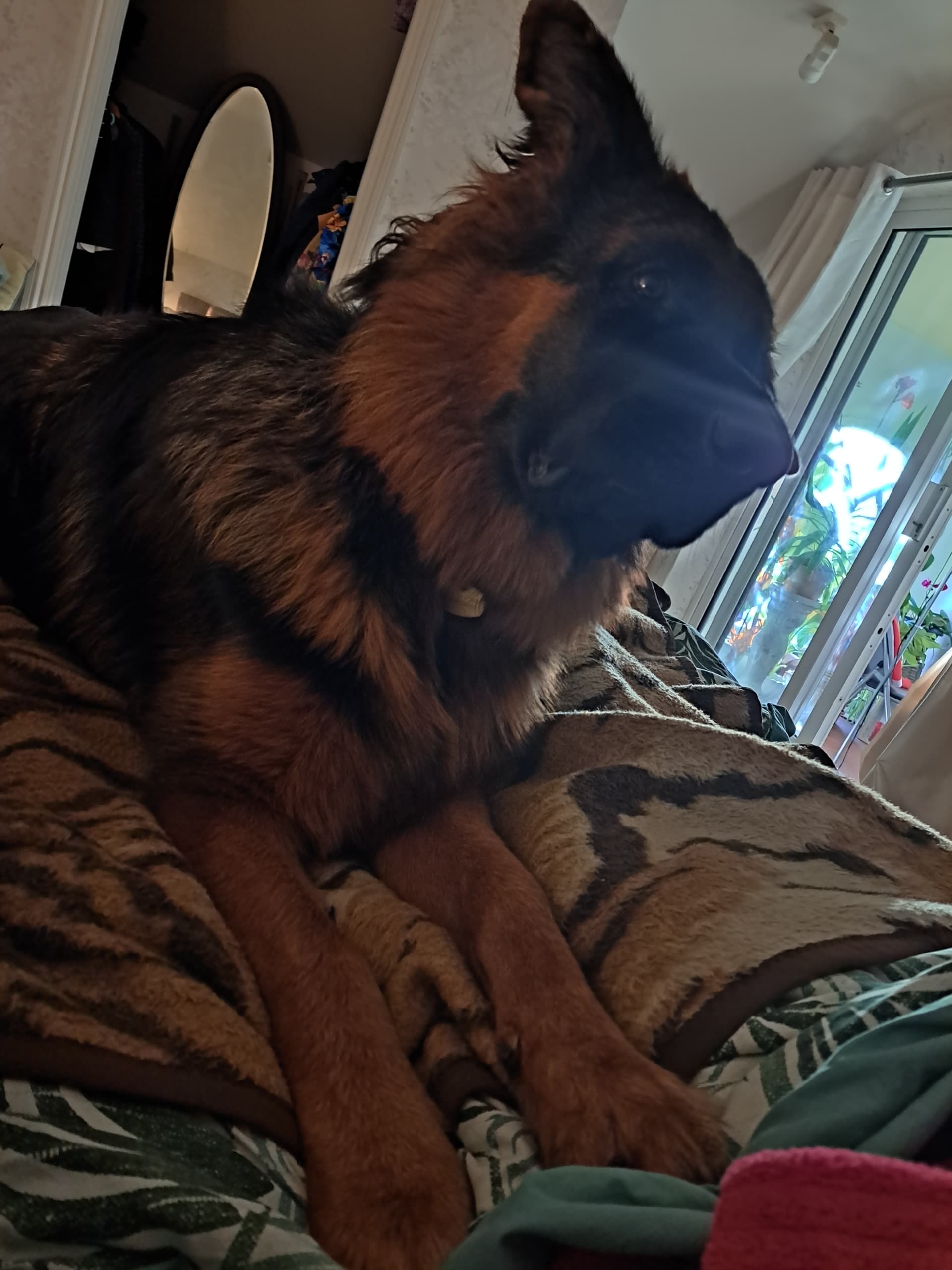 This morning. The 7kg puppy who adopted us six months joined us and snuggled in. Except he now weighs over 50kg
