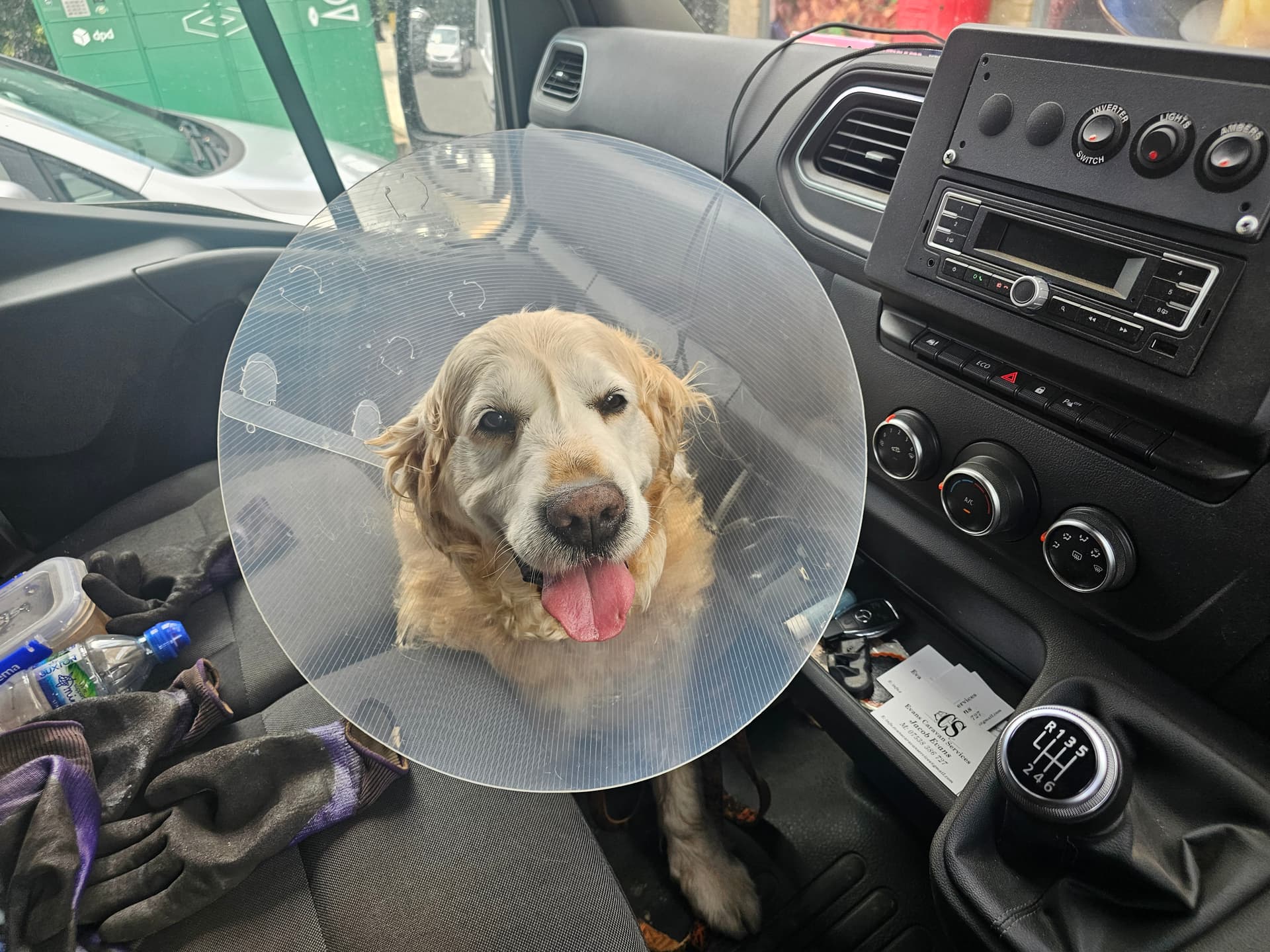 Plus, only a Goldie could wear a cone of shame and still look happy ![]()