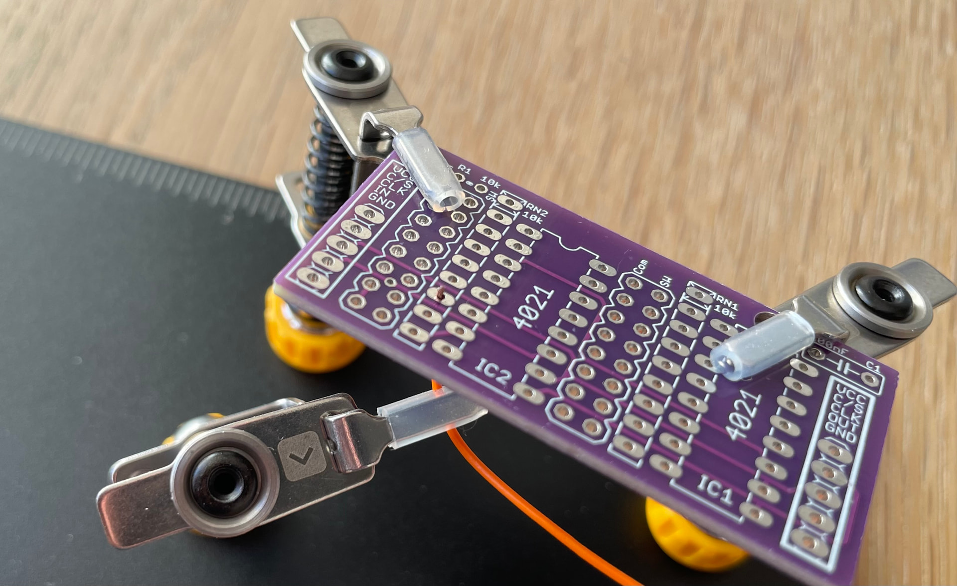 I have been using a couple of different “3rd Hand” tools and magnifying glasses when soldering for several years already. The 3rd hand tools that I’ve been using so far have been cumbersome and not very precise. Basically alligator clamps on a bendable arm connected to a base. While they did the trick, they were hard to fix to an exact position and I always had to bend the arm back and forth to get it to hold the parts where I wanted them.