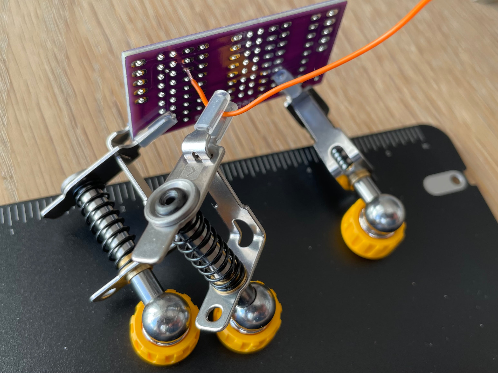Even when I used 2 clamps to hold this PCB, I could move the PCB over on its side, to get to the underside, without loosening the clamps.