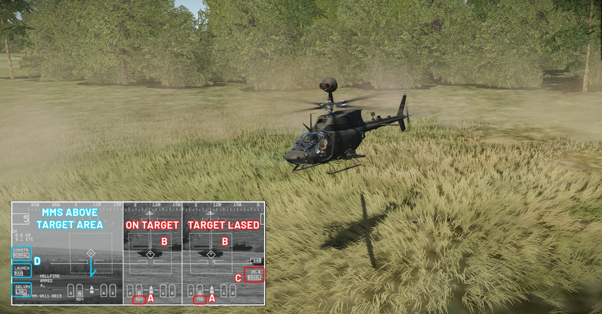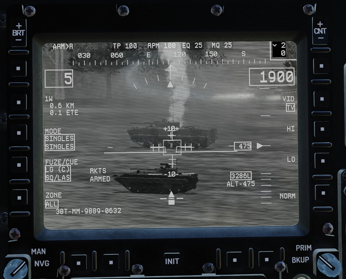 Figured out how to designate moving targets. I have a LOT to learn about pre-programmed and mark points and all of the things that would make for an efficient Kiowa pilot…