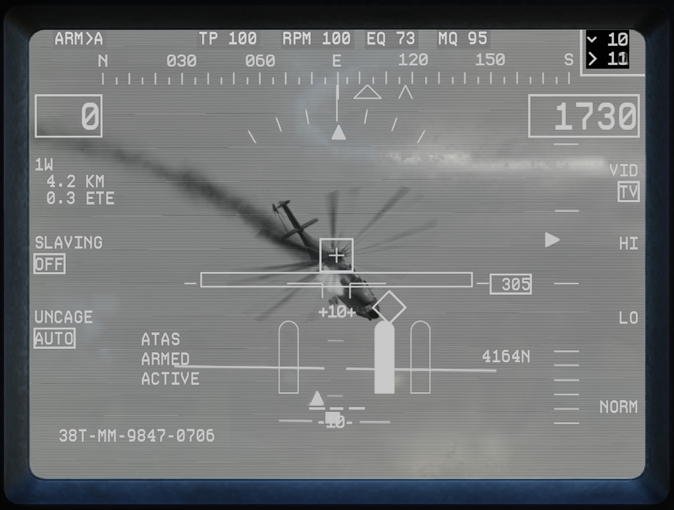 Out to the target range. I’m starting to get a better feel for the Mast Mounted Sight (MMS) controls and features. Still a work in progress…but I’m getting a slightly better “workflow”…