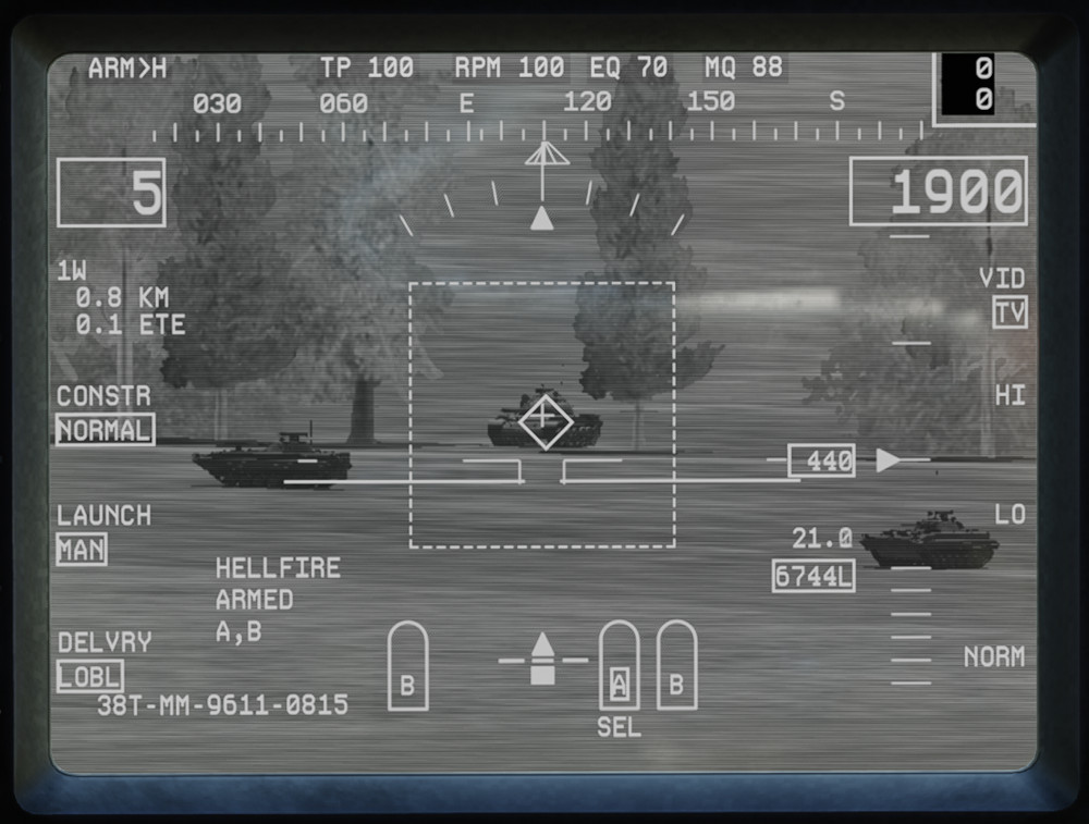 One of the funniest things in the tutorial is the statement by the instructor that: “one of the hardest things for scout pilots to learn to do is count backwards from seven…” - because there is no remaining rocket inventory data in the helicopter. You can, of course…just always look out the window into the front of the pod…