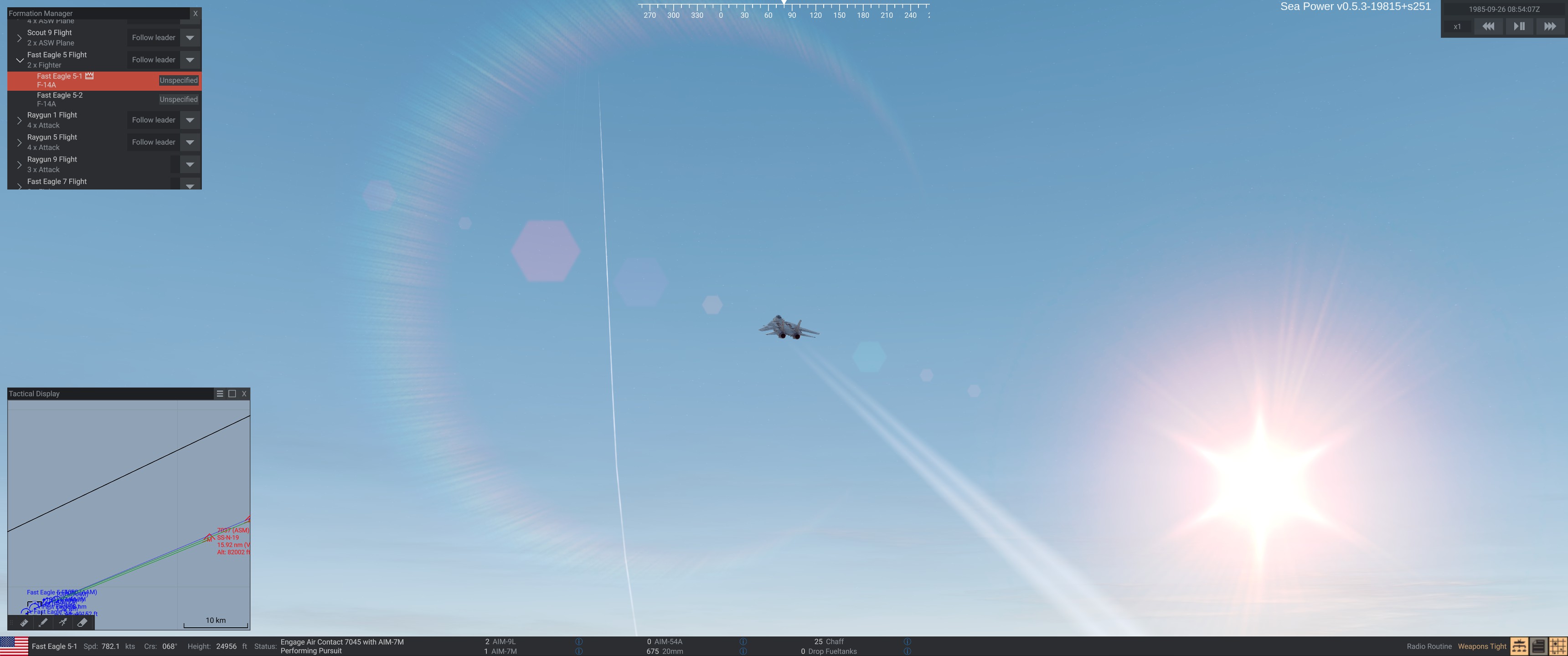 - Weapons: SM-1, SM-2, RIM-2F tweaked sustainer burn time to match documentation (20s → 30/35s)