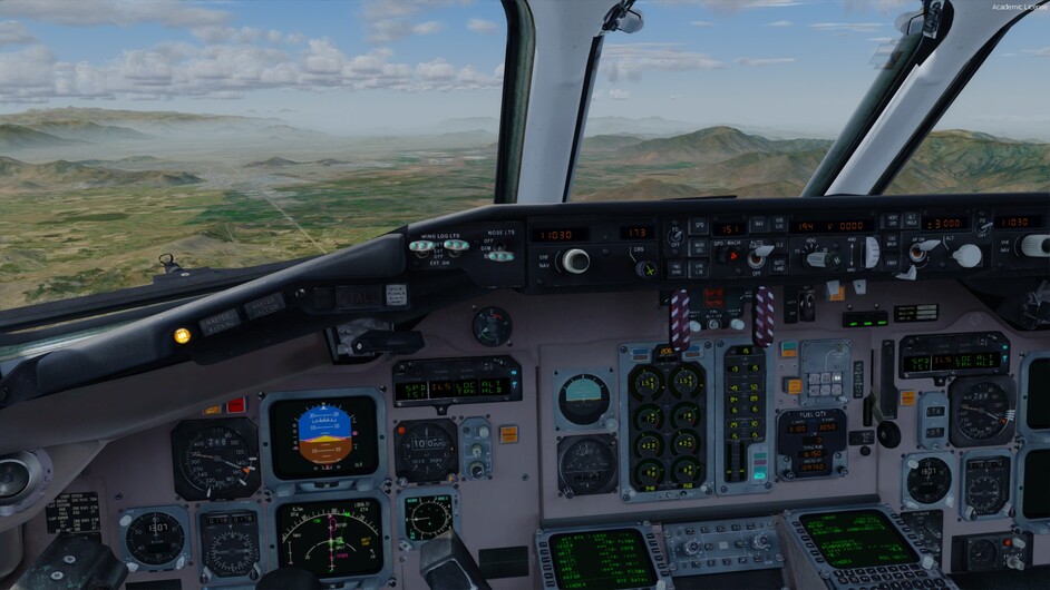 As I reach 3,000 ft, I retract my landing lights, set my remaining Engine Air and Cabin Air switches ON/OPEN. I climb at 250 kts.