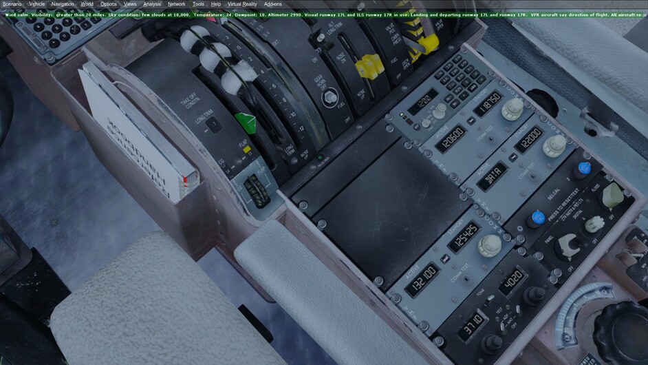 Setting my navigation frequency to 114.9 (Antofagasta VOR), which is about 1.4 miles from us. The Vulcan doesn’t really use VORs for navigation according to the manual. It comes equipped with a TACAN system, which is used by the military and not modelled in Prepar3d. However, we can tune two knobs on the COM/NAV radio panel to VOR frequencies and use them like TACAN beacons (the frequency will only be visible via cockpit tooltips). You just need to make sure that the Radio Preset Frequency Selector is set to M (Manual).`