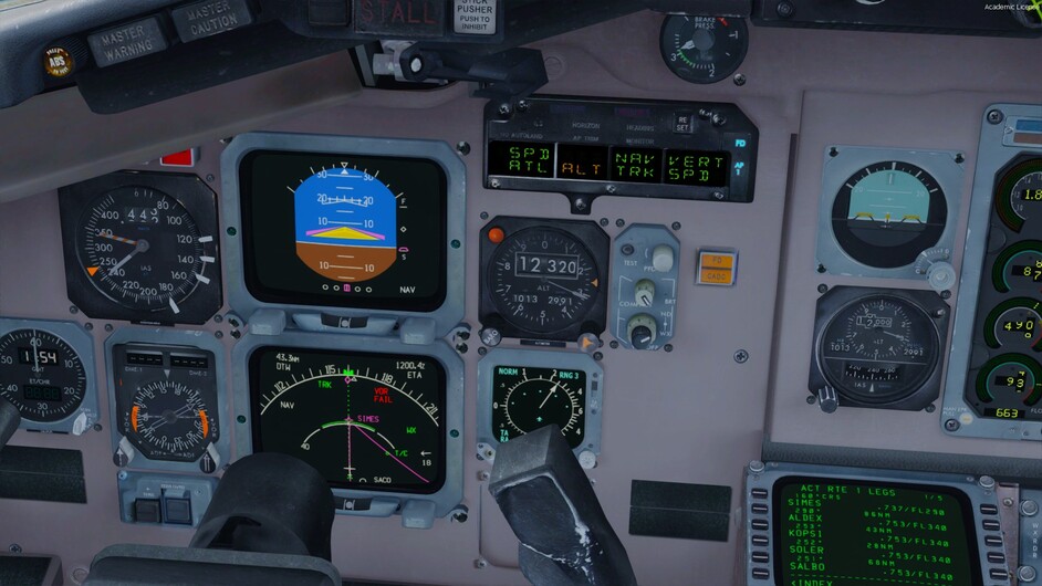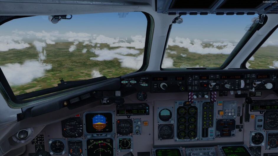 I run into some difficult autopilot oscillations as I engage it below Mach 0.6. I disengage it and climb to 27,000 ft, level off, then try again. As I reach Mach 0.7, the autopilot seems to cooperate this time. Bug or feature? I’ll have to ask the developers.