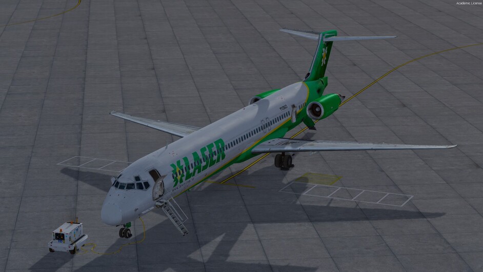 Then, the maintenance crew plug in the Houchin Ground Power Unit (under the left wing) and the Palouste Air Pressure Compressor Cart (under the right wing).