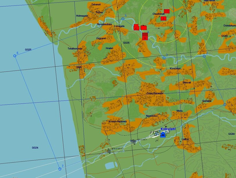 …and this is the flight plan I have started off with, following the river for a low-level attack on the Smerch platoons.