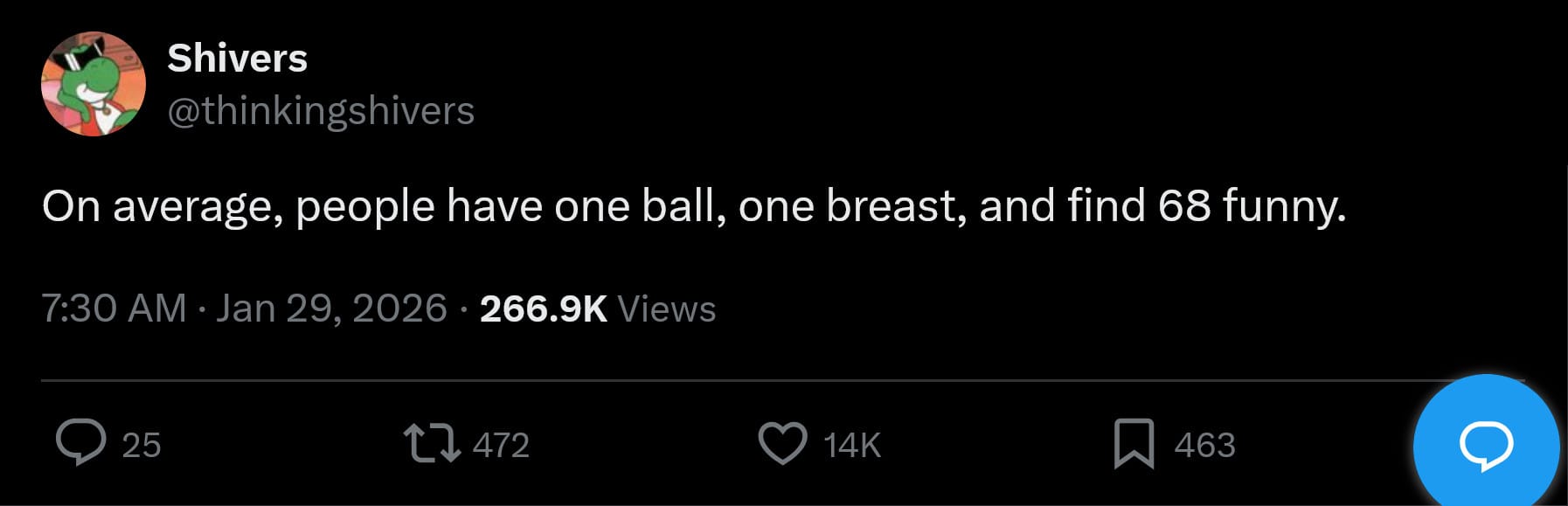 Some people find 6 7 funny, others 69. So on average 68 is funny.
