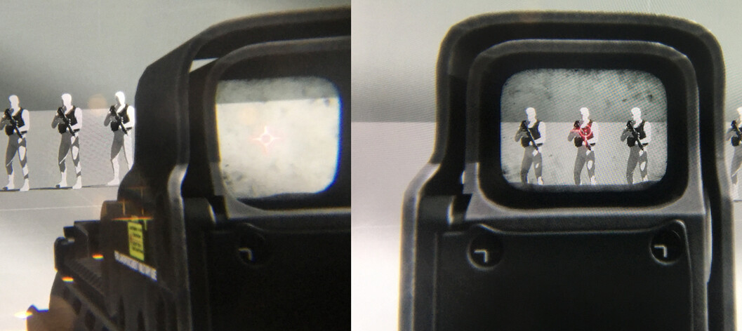 As I’ve mentioned before, infantry action is really cool looking, particularly now that I went to the more square aspect ratio as things look more proper. I composited these two through the lens shots to sort of give you an idea - the left eye shows an offset view, the right eye looking through the gun optics. You can also change eye dominance in vorpX for left/right/none to bias the weapon to going to that eye…kind of weird to experiment with, but with practice you can get very quick at bringing up the weapon and settling onto the target. It feels very realistic.