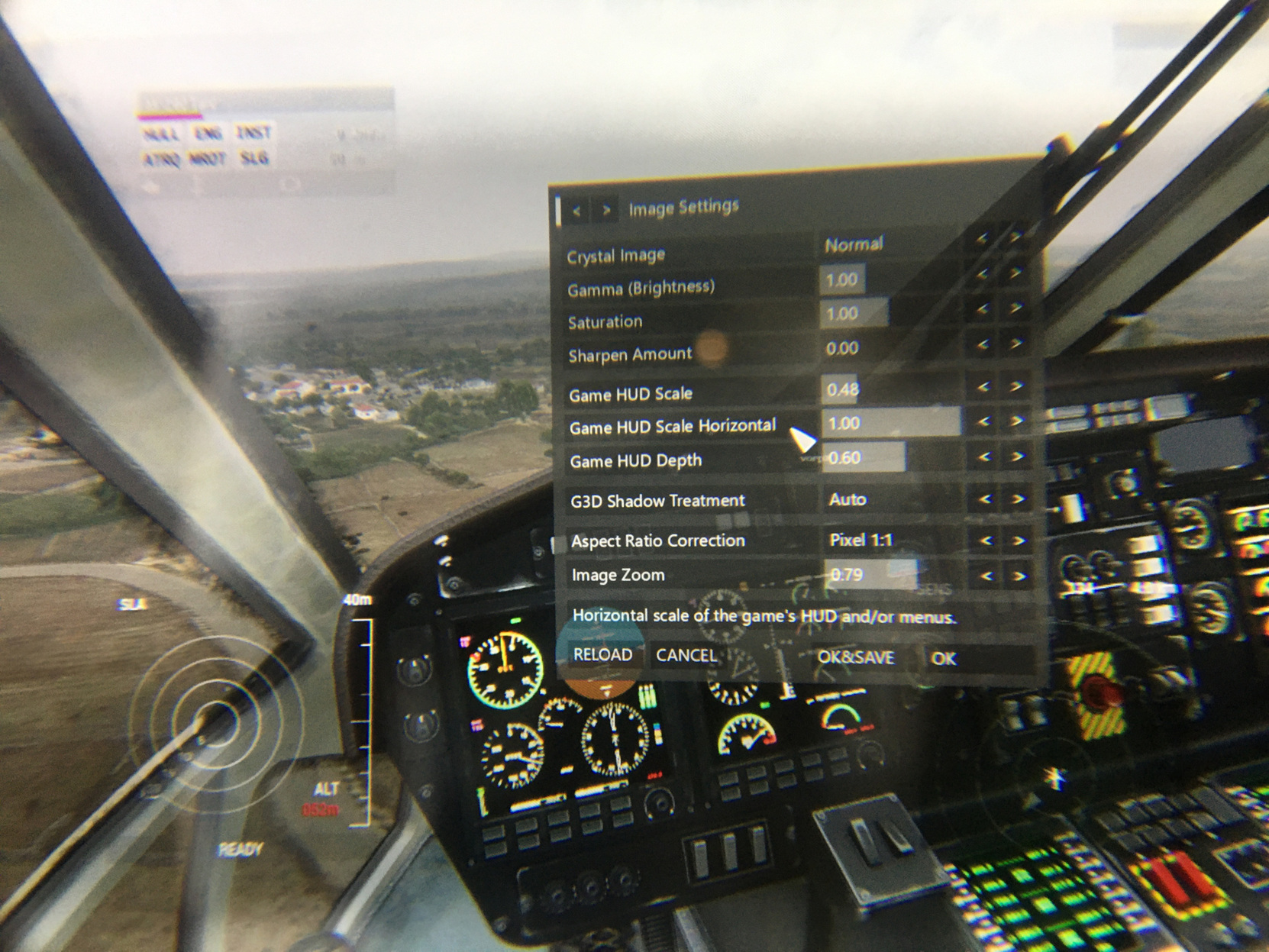 To this point, I had been running in a widescreen format, which obviously put the left and right edges out of view. Changing the in game resolution to more square view has allowed me to fit the “box” field of view more comfortably in the 3D rendered view. As well, vorpX has some really cool tools that I hadn’t really explored to move the in-game HUD overlay in closer (horizontally), as well as scale it, and even push it out and in so that the focal point changes on it. This is pretty useful for Arma 3 since you can shrink down the HUD game overlay so that you can see things like the sling load interface, context menus, and other items that normally inhabit the upper and bottom corners of a 16:9 display. You can combine these effects with the ability in Arma 3 to also change the positioning of individual portions of the HUD overlay to place what you want where.