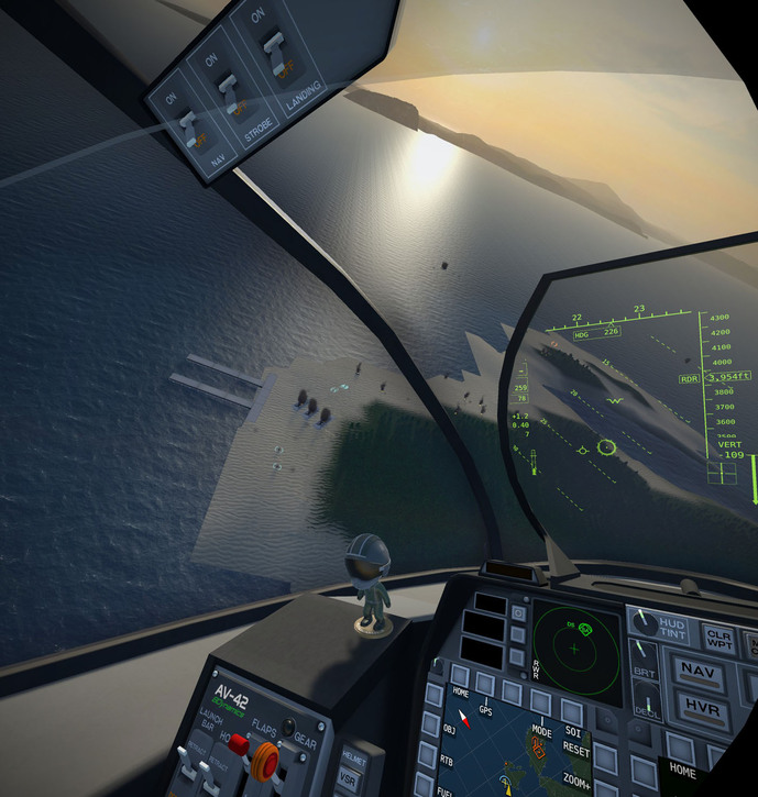 This was one of my greatest surprises with VTOL. I was skeptical, but with my chair arms, I rest my forearm on the padded chair arms and the bottom of my O+ hand controller also rests on the padding, providing a pivot point. The Rift Touch controller similarly can rest like that, but the slightly longer O+ controller actually benefits from the pivot point a bit more. Anyway, I was amazed at how precisely I can fly the VTOL planes. Refueling, hovering, carrier landings are all precisely flown but still feel very dynamic with the game’s nice flight modeling.