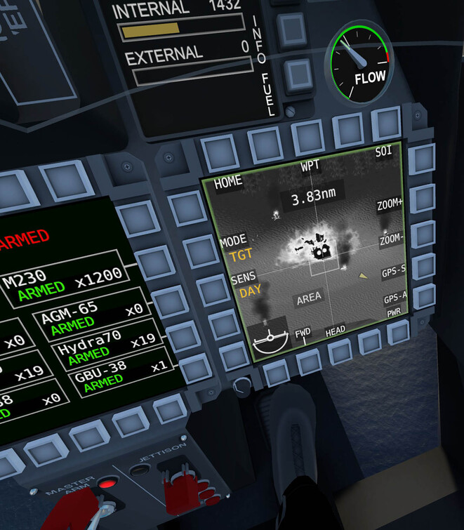 You have a limited ordnance load on this mission that cannot be altered. Two Mavericks, six JDAMs, two rocket pods, and the gun…so choose your shots carefully!
