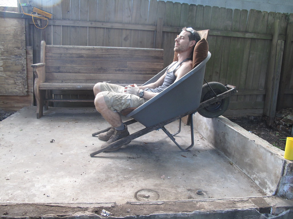 I fixed a wheelbarrow today. Measured up the broken wooden support beam that had snapped near the wheel, purchased the replacement wood, cut it to size drilled the required holes and put it all back together. I know it doesn’t sound much, but anyone who knows me would agree that it was quite a big deal (I’m not good at fixing things)… feeling right chuffed with myself. Time for a beer methinks. ![]()