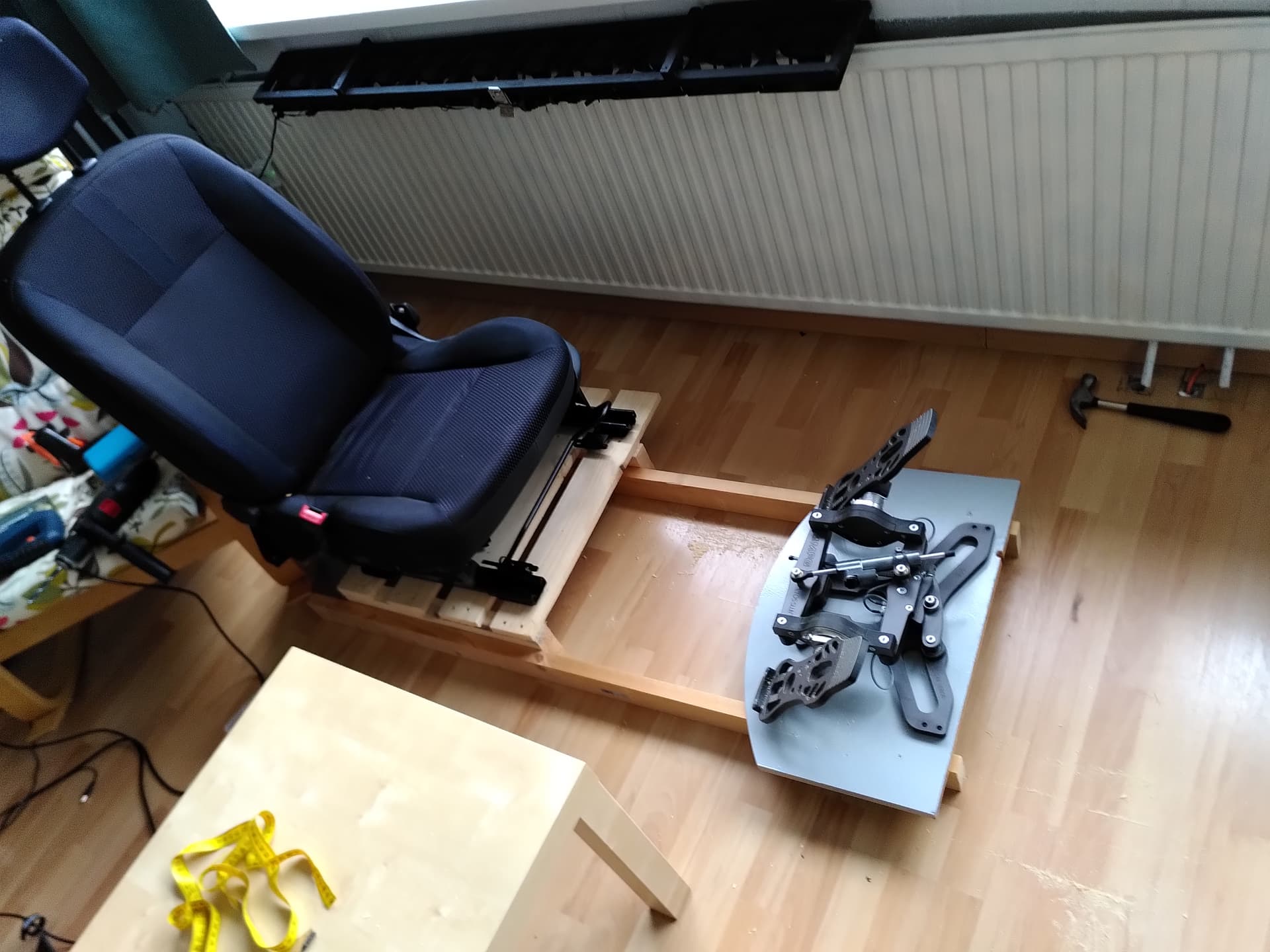 In the foreground is the next, slightly bigger project. The basic frame is there, now to attach everything in a somewhat adjustable way. And cutting a piece out of the foam part of the seat.