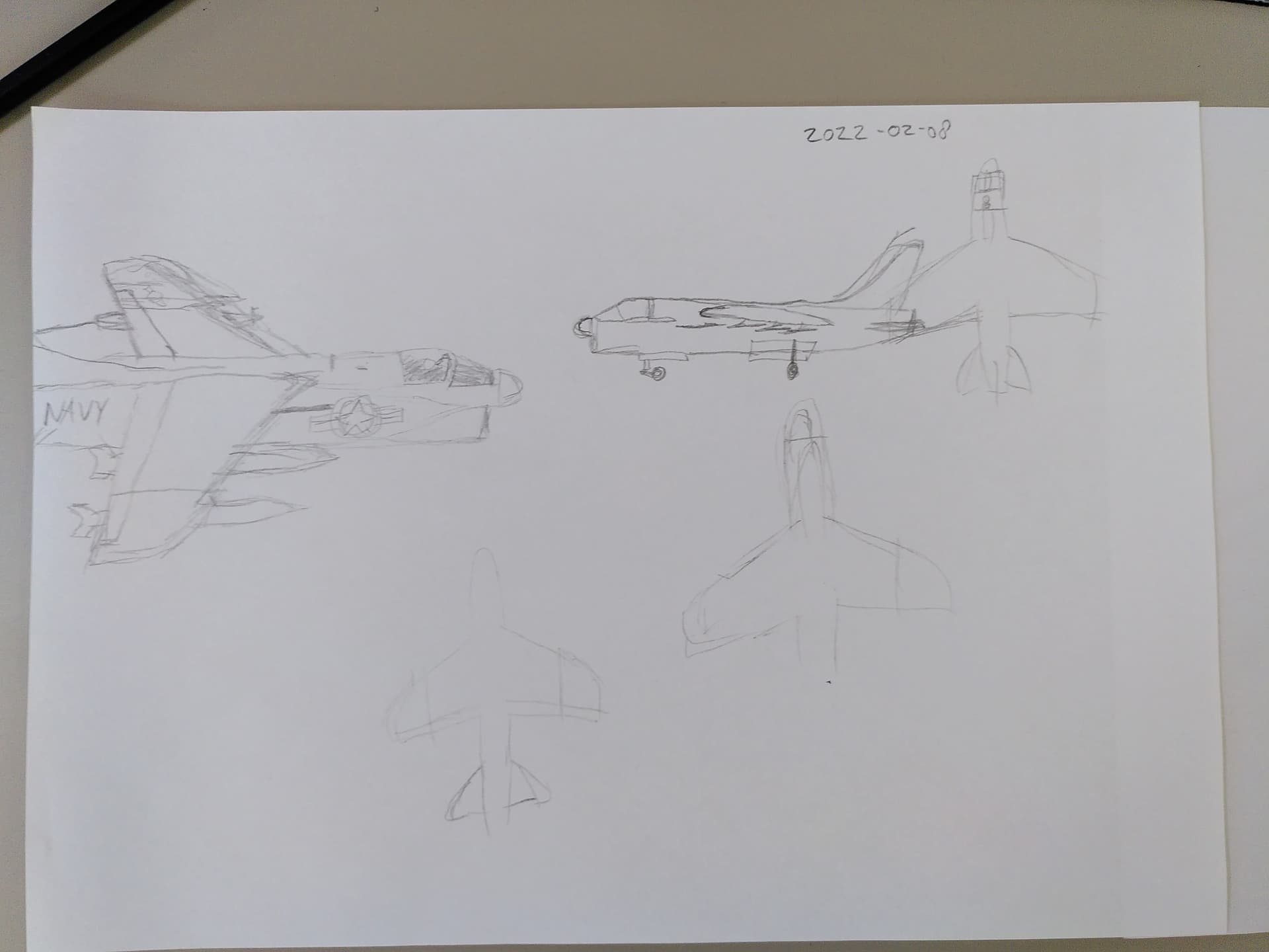 I’m particularly proud of the last one. That is an initial quick sketch, no erasing. I think the A-7’s shape is finally getting into my fingers.