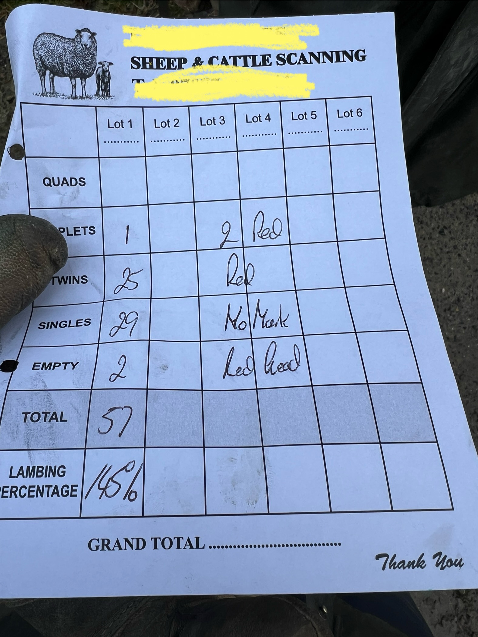 Usual scan percentage… previously it’s been around 120%, last year was the worst one with 108%. The sheep had a tough summer and autumn with the drought the previous year, nutrition has a big part to play.