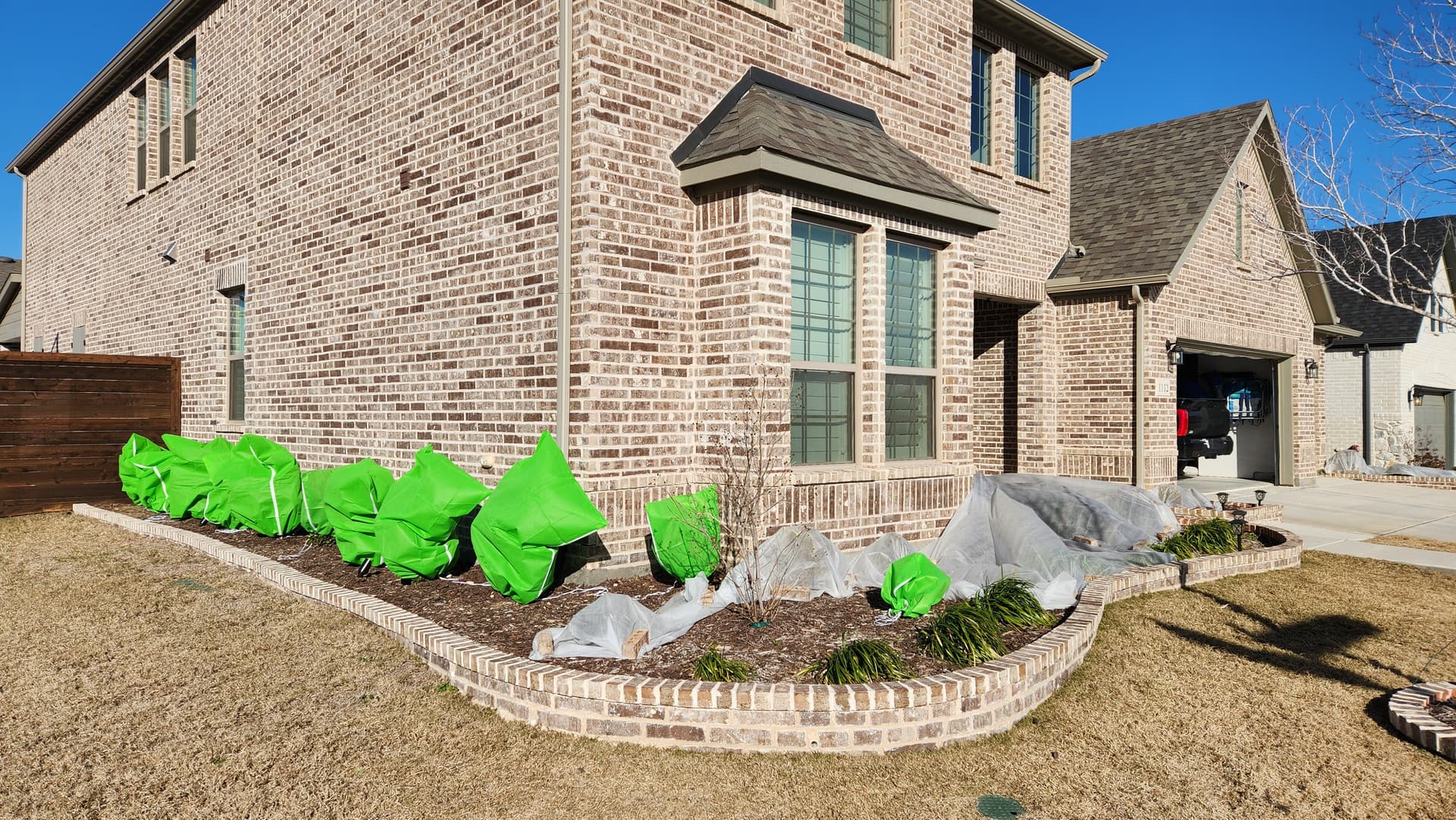 We covered up our plants and bushes since we lost a few last winter. It may or may not help, but always worth a shot.