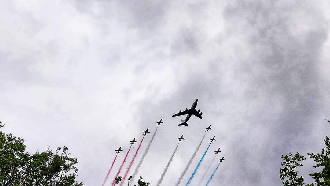 Just at my house. But the site of the house was carefully chosen like @Victork2 's. The boys are getting ready for the D Day Anniversary. They dont usualy fly with a Rivet Joint.