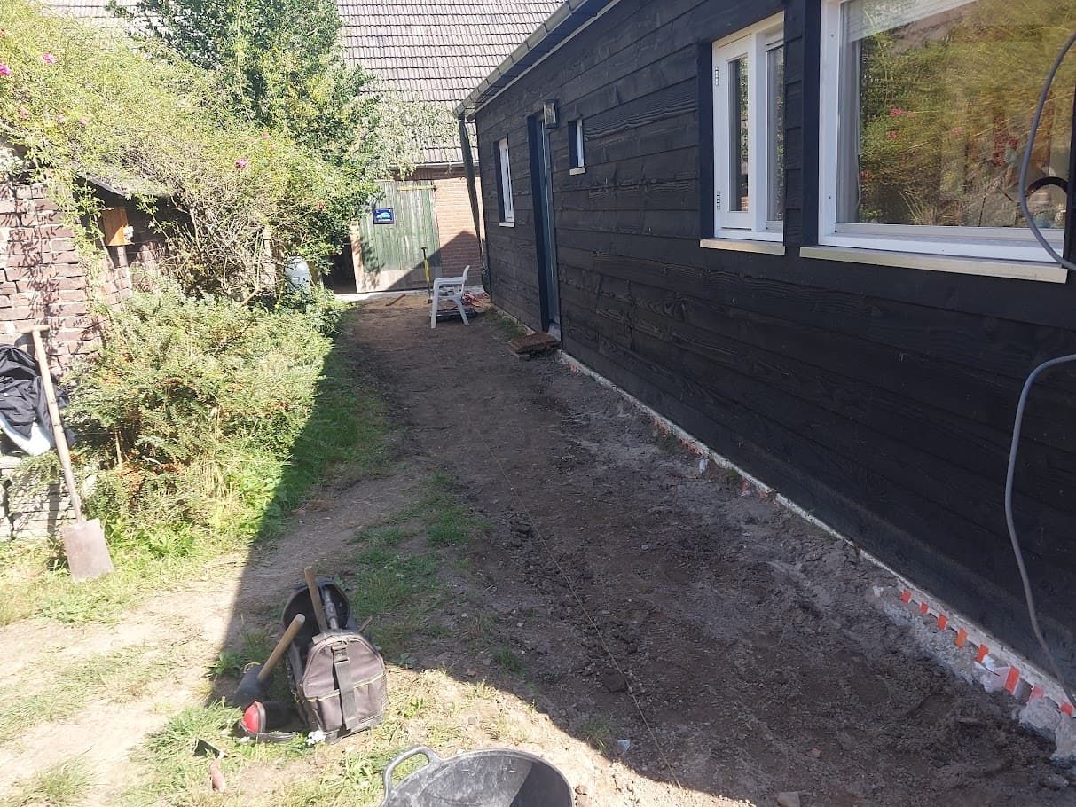 This job is absolutely huge. About the biggest soil moving and paving operation I have done so far. Most of the digging was done in one day by a guy with a digger we hired. It would have taken us weeks to do that by hand.