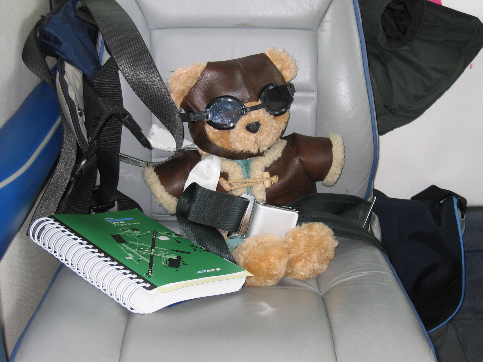 I did just that with a teddy bear. I will see if I can find the pictures of ‘Go Bear’. Most were prints that went into his logbook. He flew F18 off a real US carrier. Two displays with the red arrows. Mutiple trips round the world on airlines with all the big players. Nigel Mansell flew him in his King Air - the one the French impounded for not paying VAT (residents of the Isle of Man do not have to pay VAT). Before Go Bear could fly in the Tornado and stand QRA he had to have a full aviation medical and a dental exam. I should have the photos of these. In two photo’s he is between the junior pilot/nav of 43 Sqn on QRA. The crew look very embarrassed but their boss said do it. I knew the boss. I should also have him briefing 3 Flight Army Air Corps at RAF Leuchars on their mission (Gazelles). After a year of this lifestyle he was auctioned by Peterborough parachute club for charity. With his log book signed and annotated.