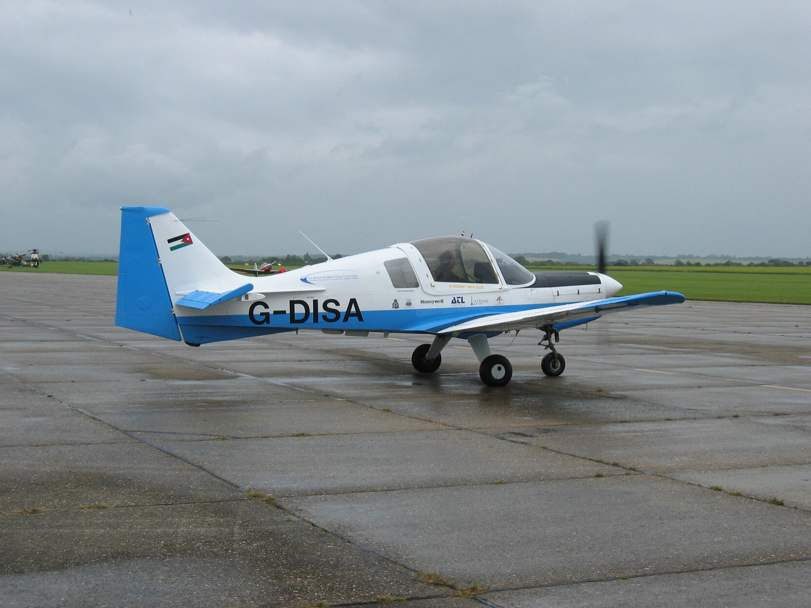 The first aircraft owned by the British Disabled Flying Association (who had got me back flying after my injuries). I had flown it up to Scotland from Lasham where it was based. G-DISA was one of five Buldogs gifted to the BDFA by King Hussain of Jordan. The Jordanian flag was kept on her tail. All five were in poor condition but it was simple enough to merge the five into one airworthy aircraft. Many thanks to Lasham Engineering, ex DAN Air.