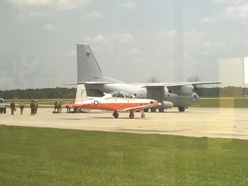Don’t know that I’ve ever seen an Army T-6 Texan. I think he is maybe a photo ship for the C-27J. Looks like special ops training…