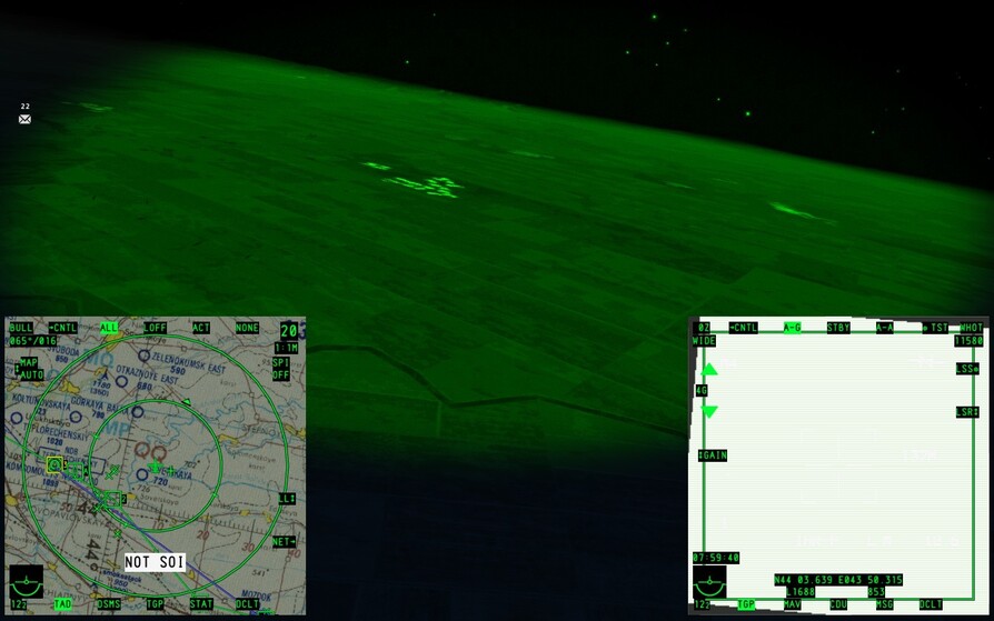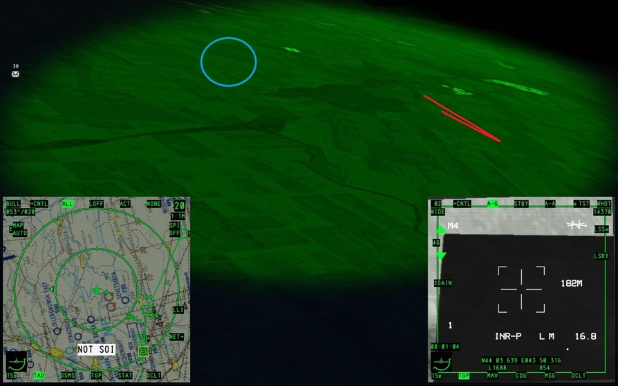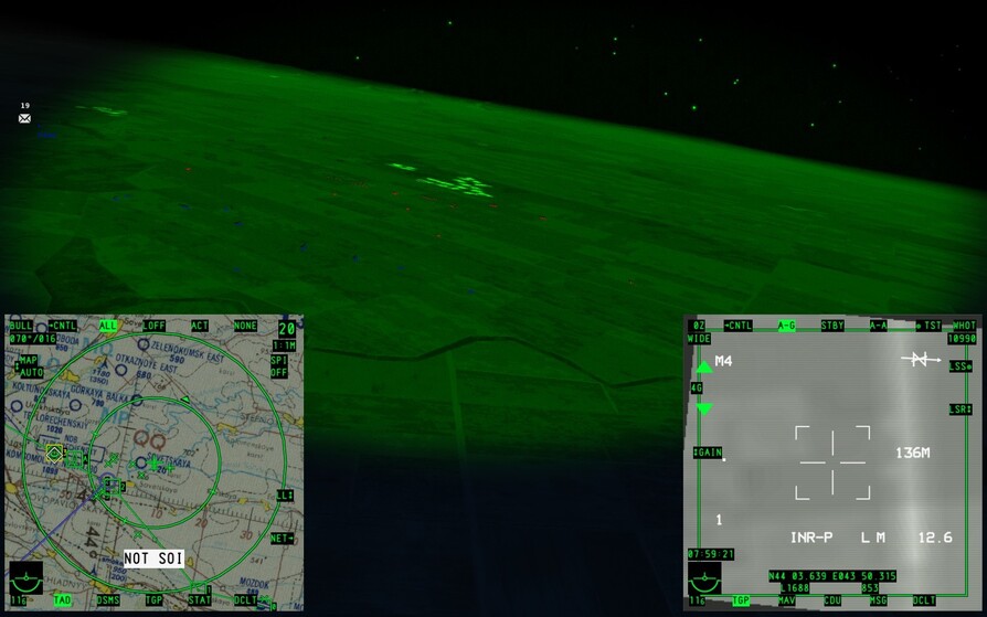 Got to fly my Hog in the dark last night. I saved the ‘Simply War’ mission with the Model Enlargement set to Large. Labels are optional in the mission. There is a lot of ground fighting in this one (especially with Combined Arms) so plenty of tracer rounds to show where the activity is. With this Enlargement setting I am able to see ground units at about 10-12 miles away, pretty easy to spot when you know where to look. Here is a comparison of Labels On and Off –