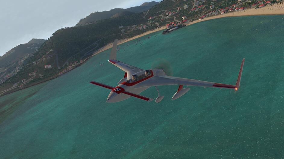 The simulated version is a lot of fun to fly, especially in VR because it is so small and snug, yet the visibility is great. There is a simple autopilot with Alt hold and Attitude hold (that can be adjusted up down left and right). No Heading or Nav modes though, which will make it a bit of a pain to fly a long cross country, which is a bit unfortunate. It handles nicely and doesn’t need a lot of runway. Stalling characteristics are interesting as the canards are designed to stall before the main wings, so you end up with a bobbing motion if you just try to hold it in the stall. It’s very benign in that regard. The fuel selector is right in front of you in this airframe, so no problems switching tanks, and you can feel when there is an inbalance.