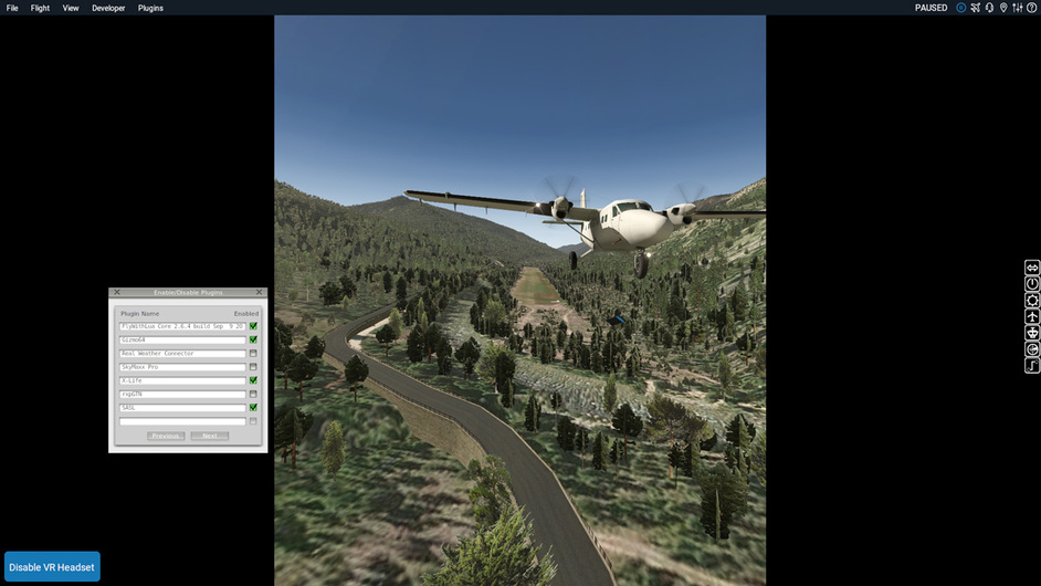 So you can see the clouds in this screen. This is my full-up X-Plane install with SkyMaxx Pro, Real World Connector, blah, blah, blah⦠Clouds donāt render properly in VR (whether created by 3rd party or by the default sim), so you have to turn them off in the menu system by turning off the plugins controlling them.
