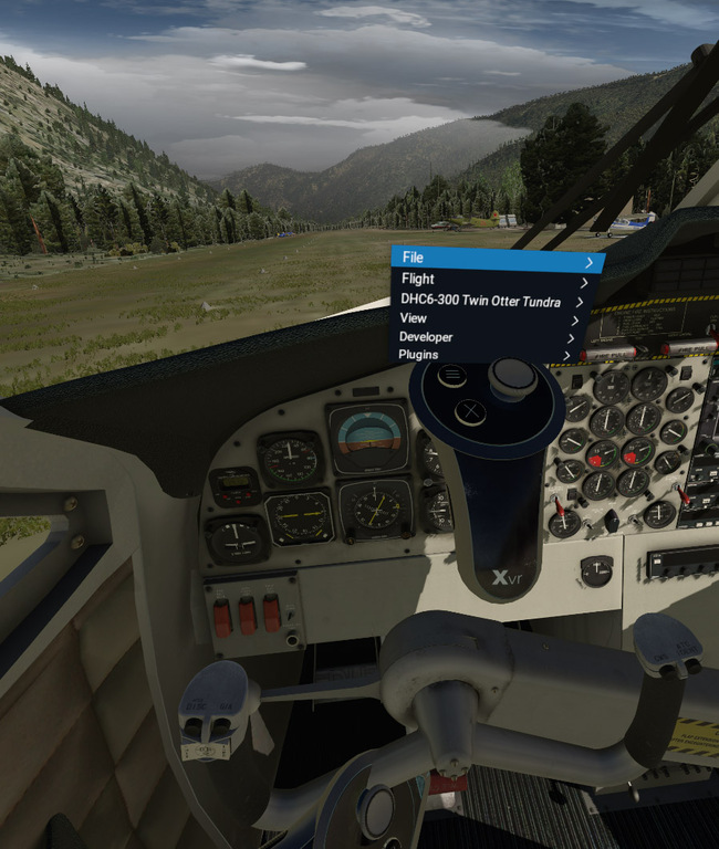 The RW Twin Otter is pretty nice looking in VR, but it will need a cockpit overhaul to get some buttons working. Here you can see the knob selection using the Touch Controllerā¦left inner / right inner / left outer / right outer. It works, but it could be tough to get the ādepthā of the Touch Controller just right. Not because of depth perception problems, but just the small amount of difference between the inner and outer knobs.
