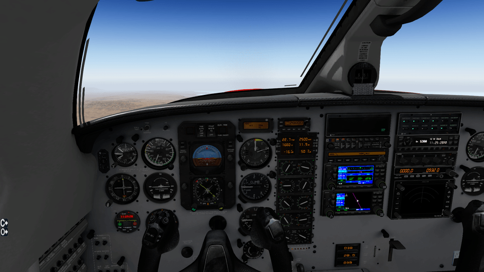 Carenado PA-46 Malibu Mirage, this aircraft is quickly growing on me. FL200 flying with economy cruise settings. The engine is a bit of a trickster to learn, it’s a piston but has a TIT indicator which indeed means Turbine Inlet Temperature. Not quite sure how this engine works so now I am reading up on how that works, but that’s the fun of learning in a simulator!