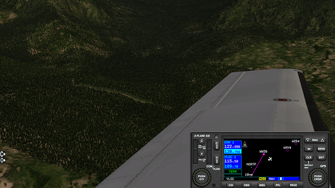 Flying into WW01. I think they use a slightly less steep approach then I did but heck, if it ain’t fun! besides, the PA-46 Malibu Mirage seems quite happy to deal with this airstrips, but thundering down the hill is still a bit unnerving.